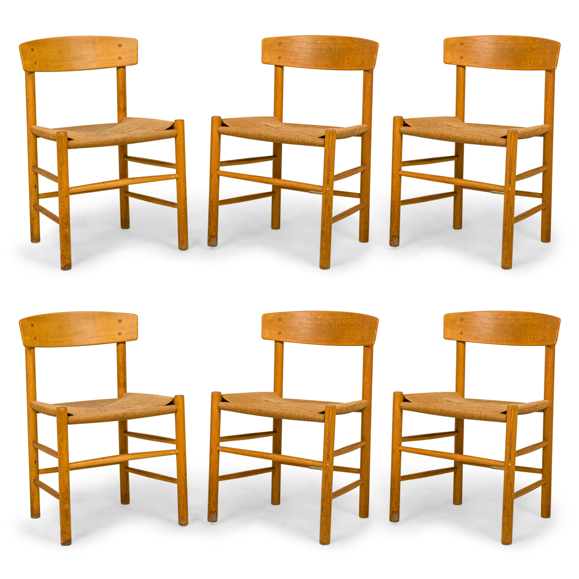 7 Danish Mid-Century side chair with an oak frame and backrest and a woven papercord seat. (BØRGE MOGENSEN FOR FDB MOBLER)(PRICED AS SET)