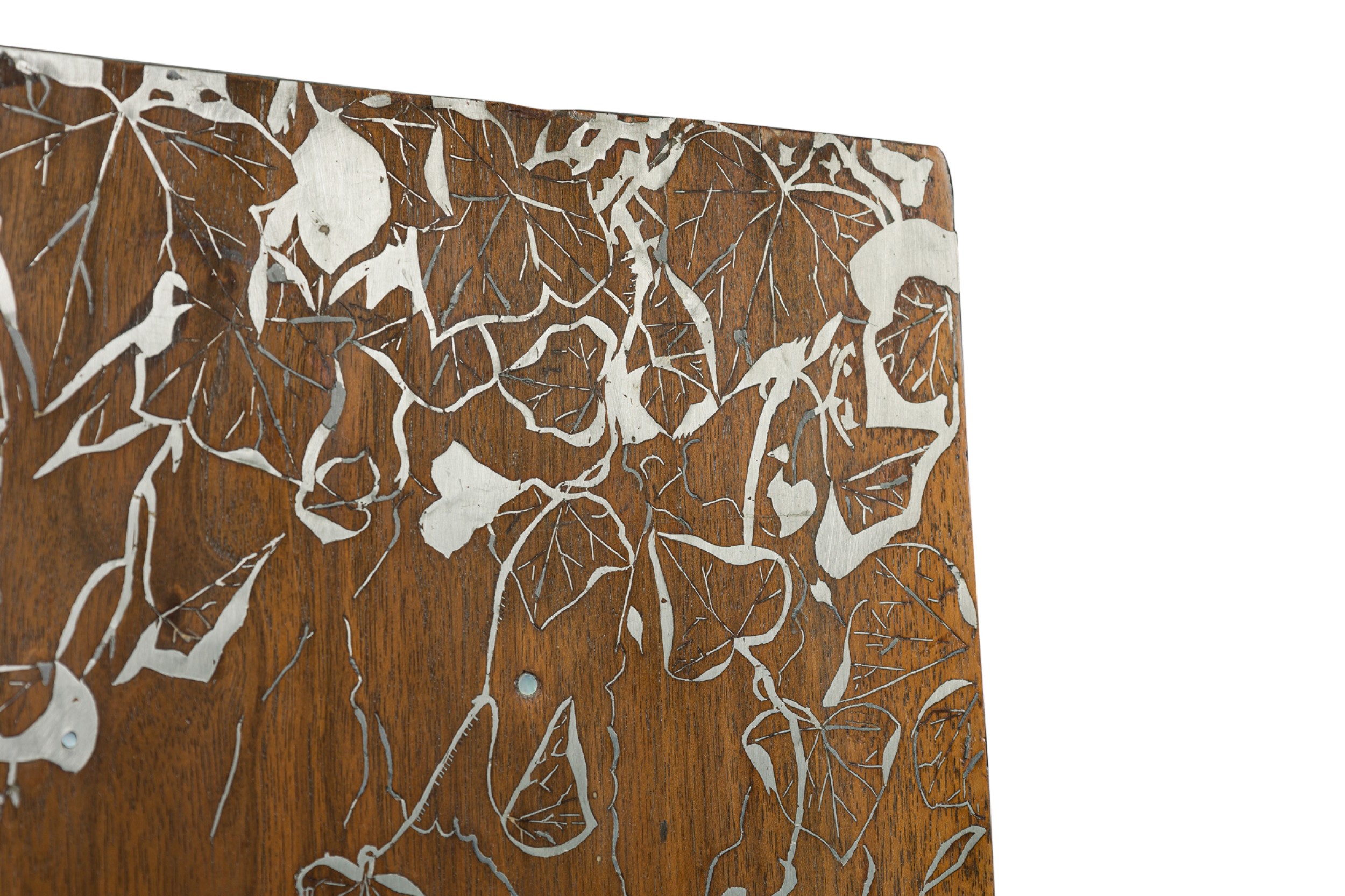 Style: Art Nouveau Materials & Techniques: Bone, ebony, inlaid, inlay, mahogany, metal, mirror, pearl / mother-of-pearl, silver, wood Category: Stands/Racks Condition: NOTE: crack in lower section of the mirror; Wear to finish Good; Wear consistent with age and use