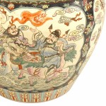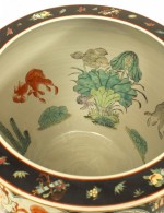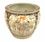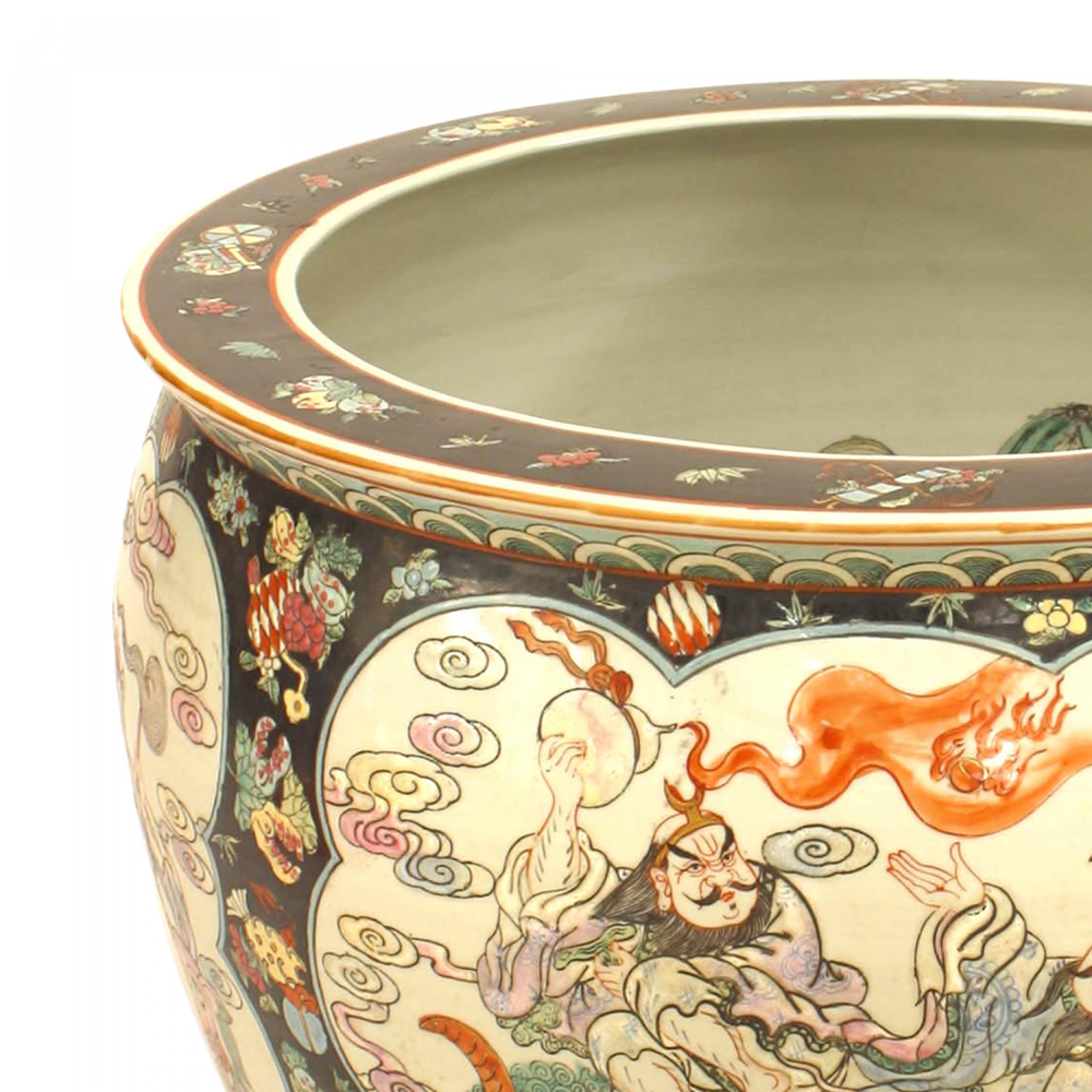Asian Chinese-style (19/20th Century) black & white jardiniere (fishbowl) with 4 scenes with figures and decorated on inside..
