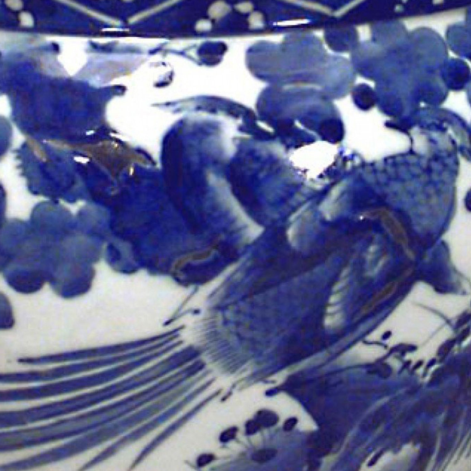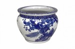 Asian Chinese-style (20th Century) small blue and white porcelain cachepot with bird and floral design.