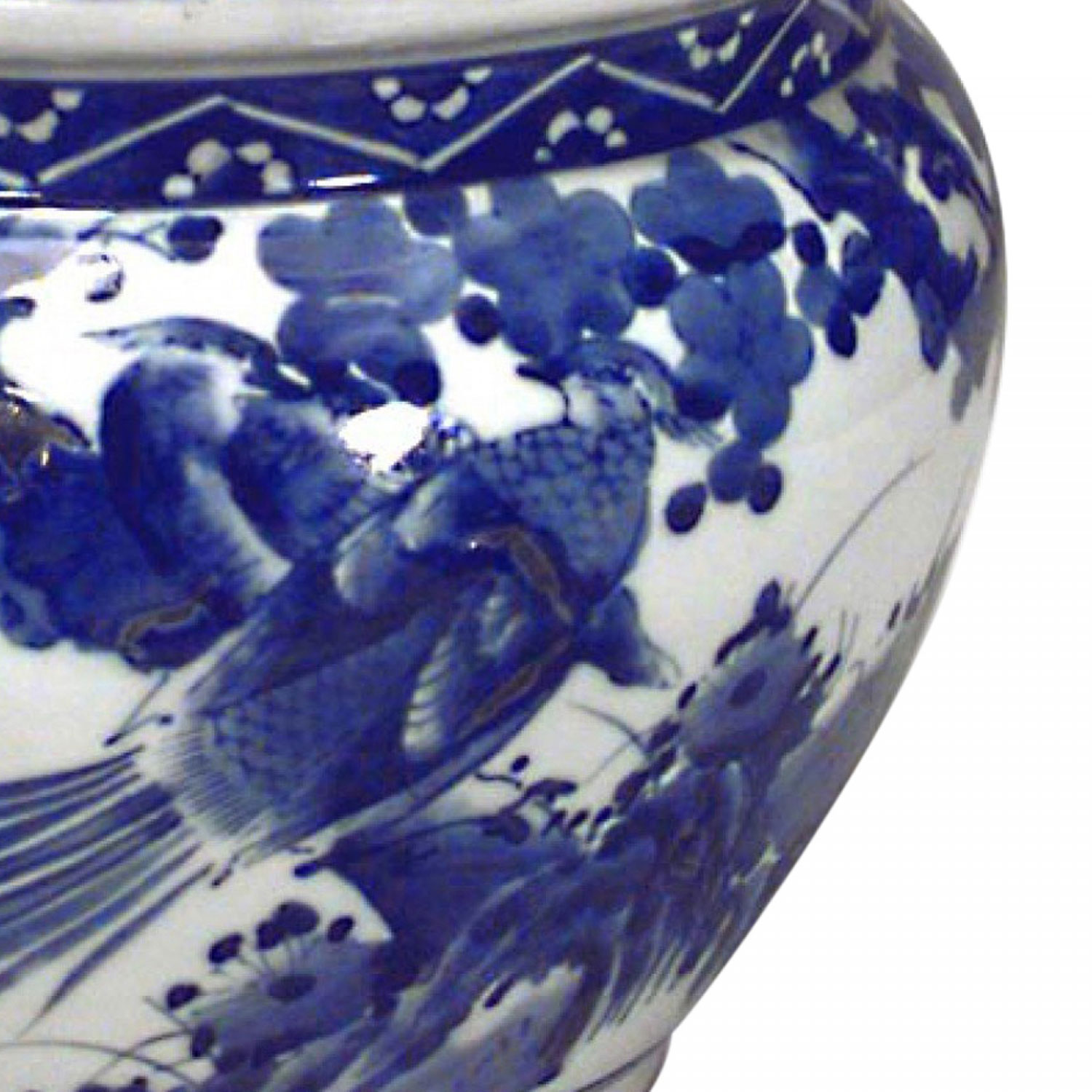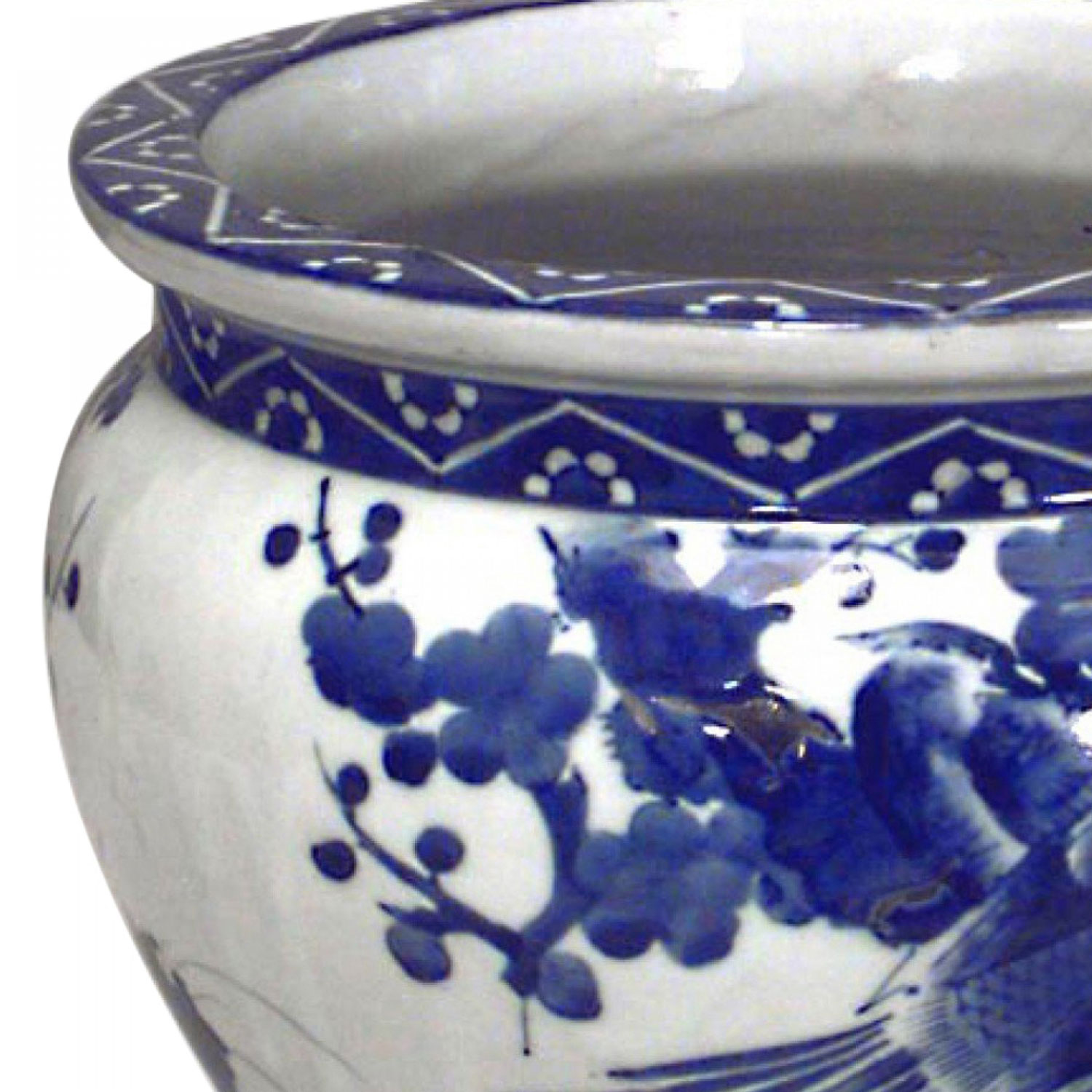 Asian Chinese-style (20th Century) small blue and white porcelain cachepot with bird and floral design