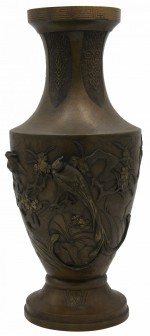 Asian Chinese (19th Cent) bronze vase with birds in relief.