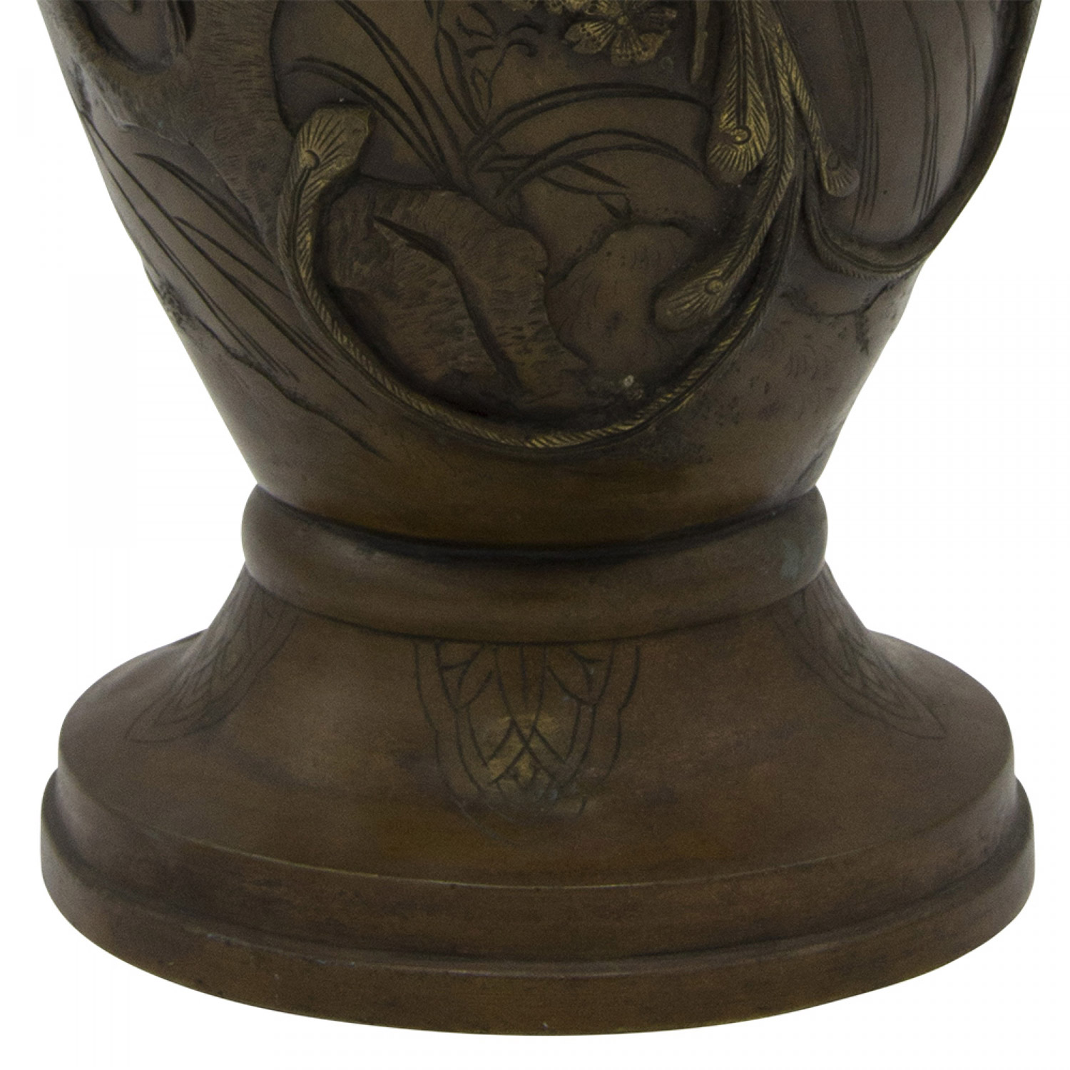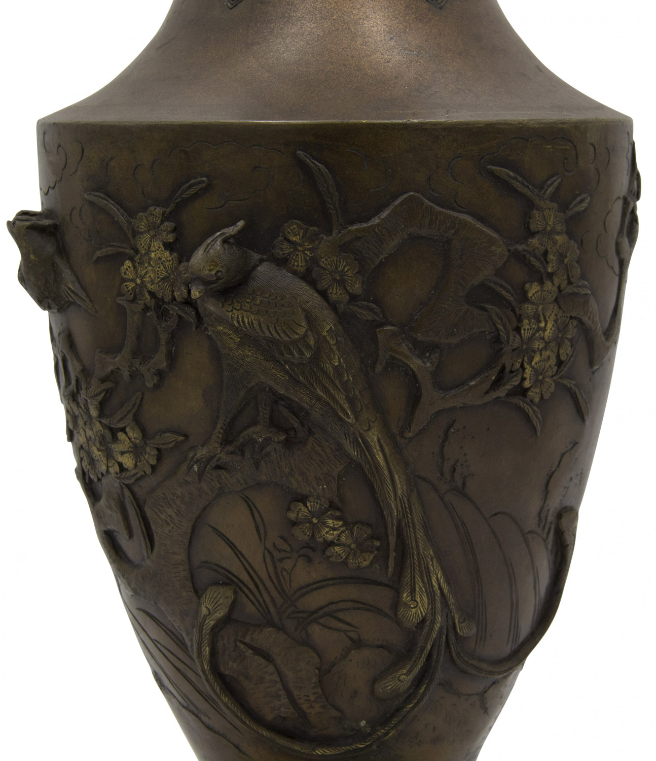 Asian Chinese (19th Cent) bronze vase with birds in relief..