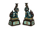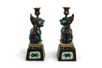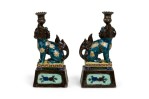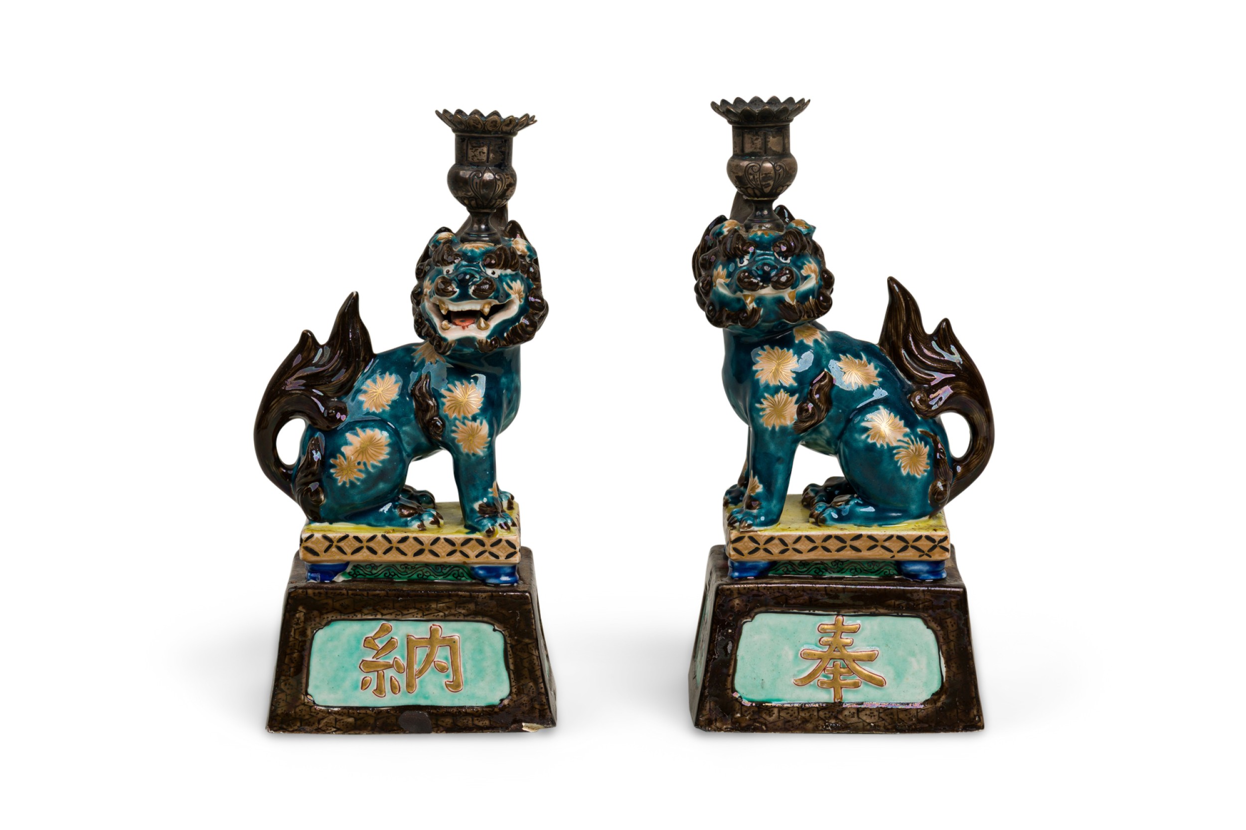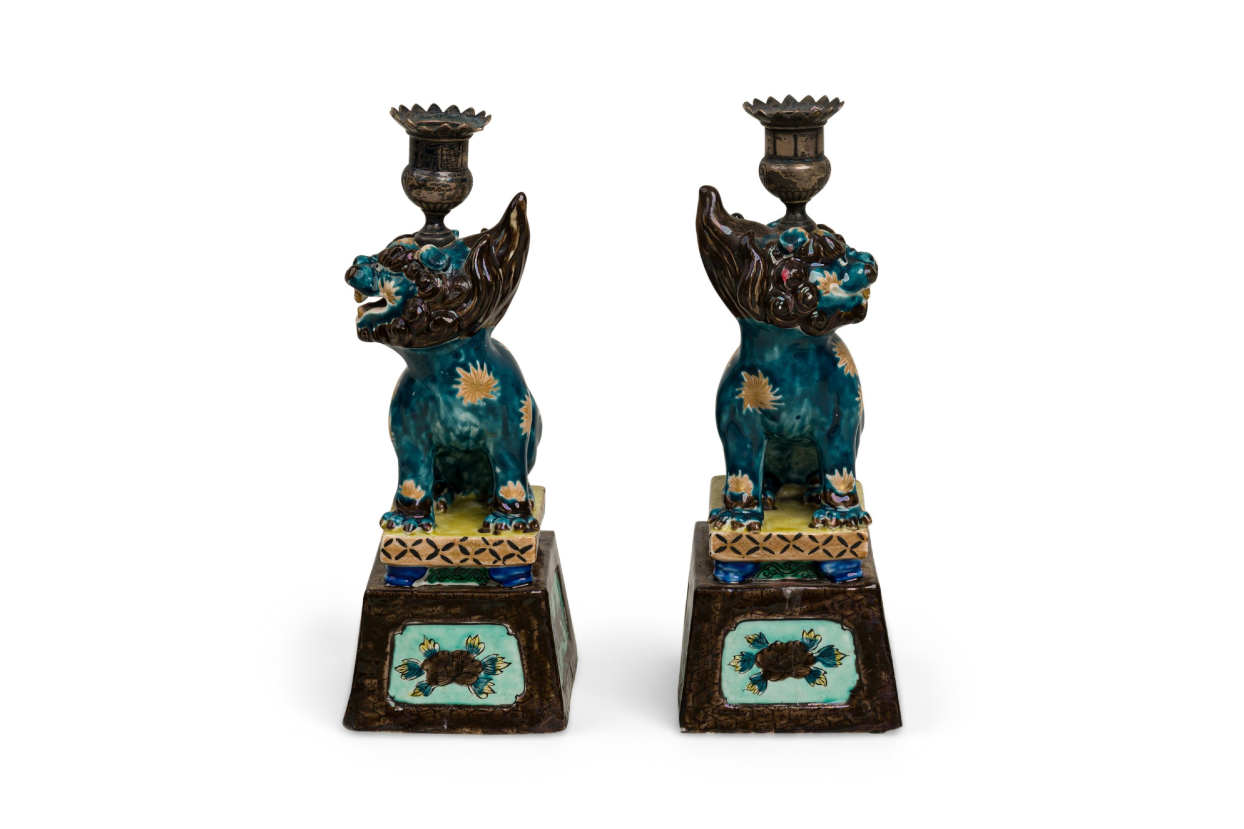 Pair of Chinese Style Decorative Porcelain Foo Dog Candlesticks