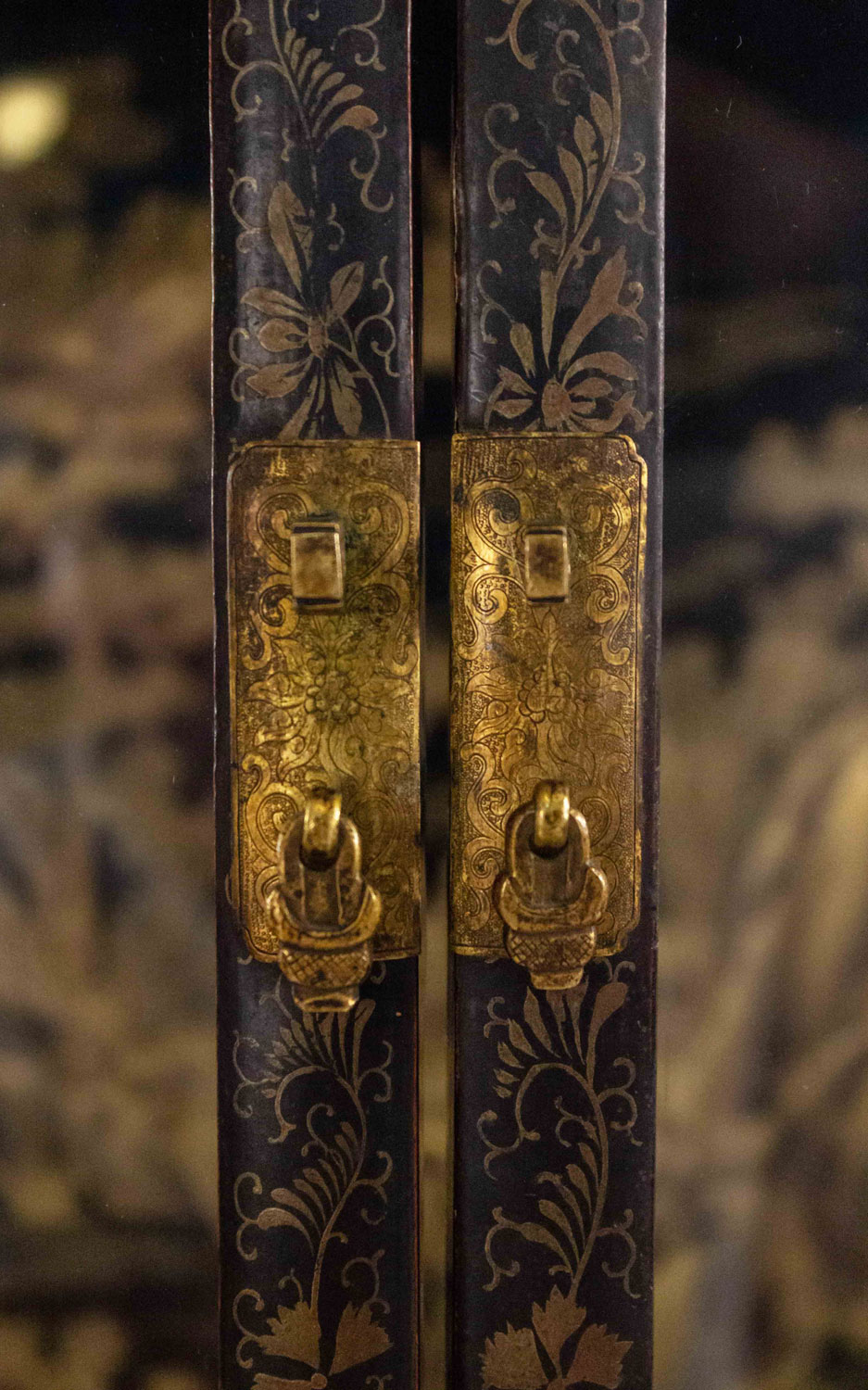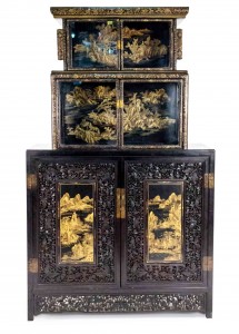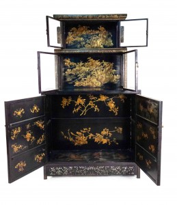 Style: Asian Materials & Techniques: Glass, wood, brass, lacquered, carved Category: Cabinets & Case Goods