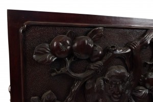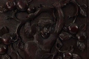 Asian Chinese style (19th Century) carved wall plaque with monkeys playing in trees with fruit (finished on back with bamboo trees)..