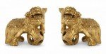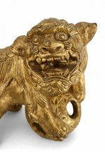 PAIR of Asian Chinese style gilt carved foo dog figures holding a open design ball.
