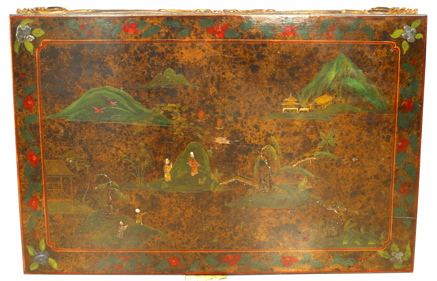 Asian Chinese Style Lacquered Landscape Scene Coffee Table