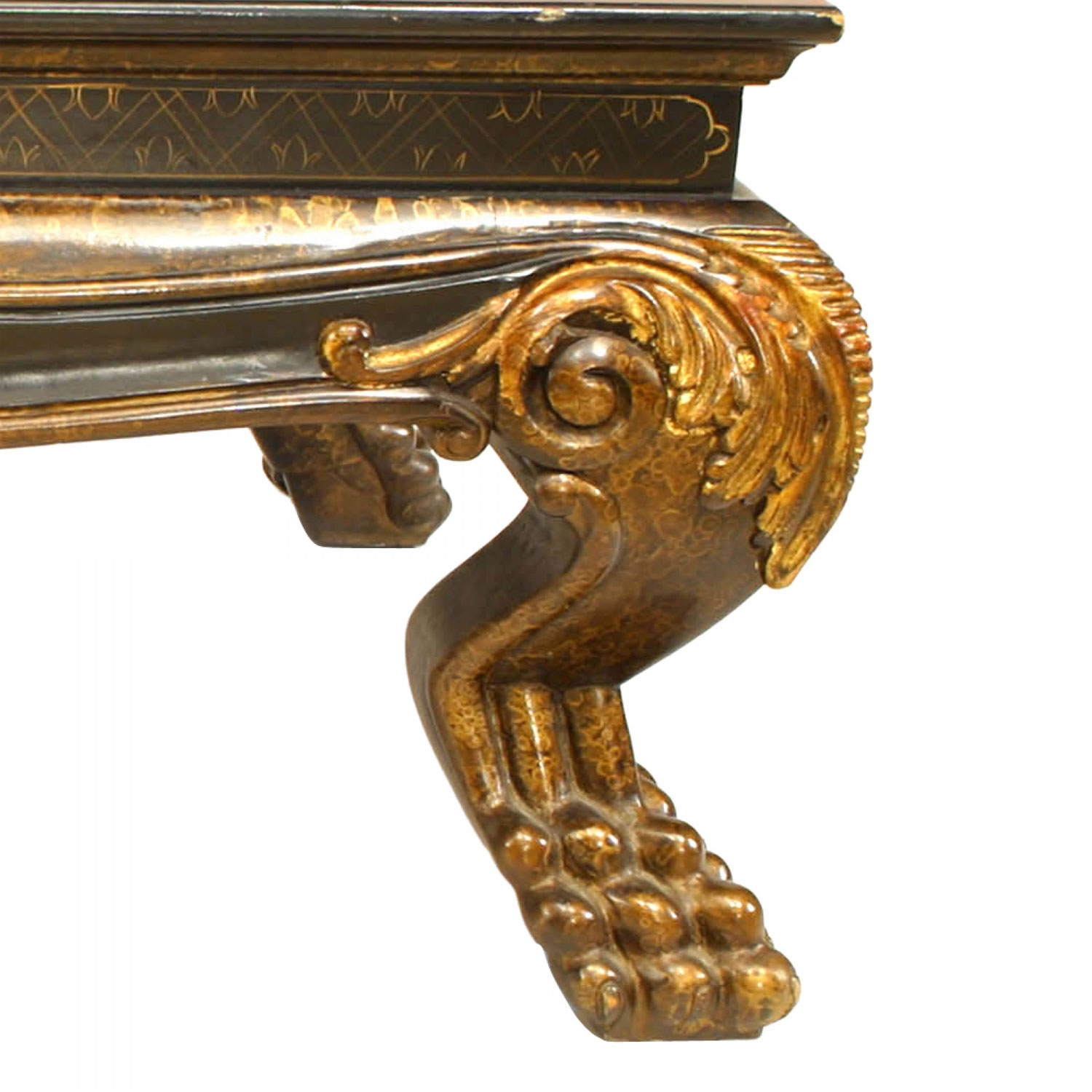 Asian Chinese-style (19/20th Century) carved and lacquered coffee table with a rectangular top featuring a landscape scene with figures and a floral border supported on cabriole claw form legs..