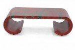 Chinese Red and Green Bamboo Motif Scroll Cocktail / Coffee Table