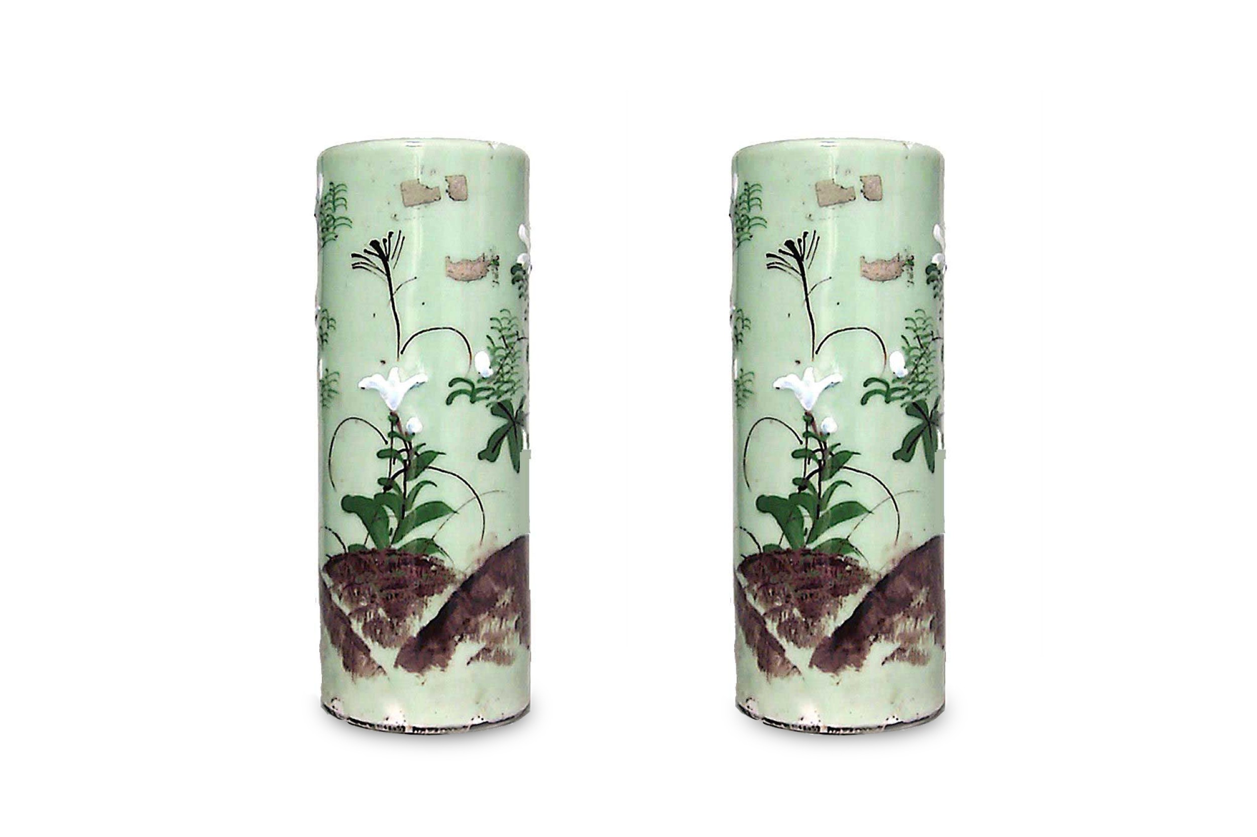 PAIR of Asian Chinese style celadon porcelain cylindrical shaped vases (19/20th Cent.).