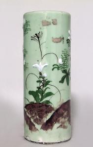 PAIR of Asian Chinese style celadon porcelain cylindrical shaped vases (19/20th Cent.)