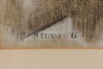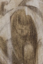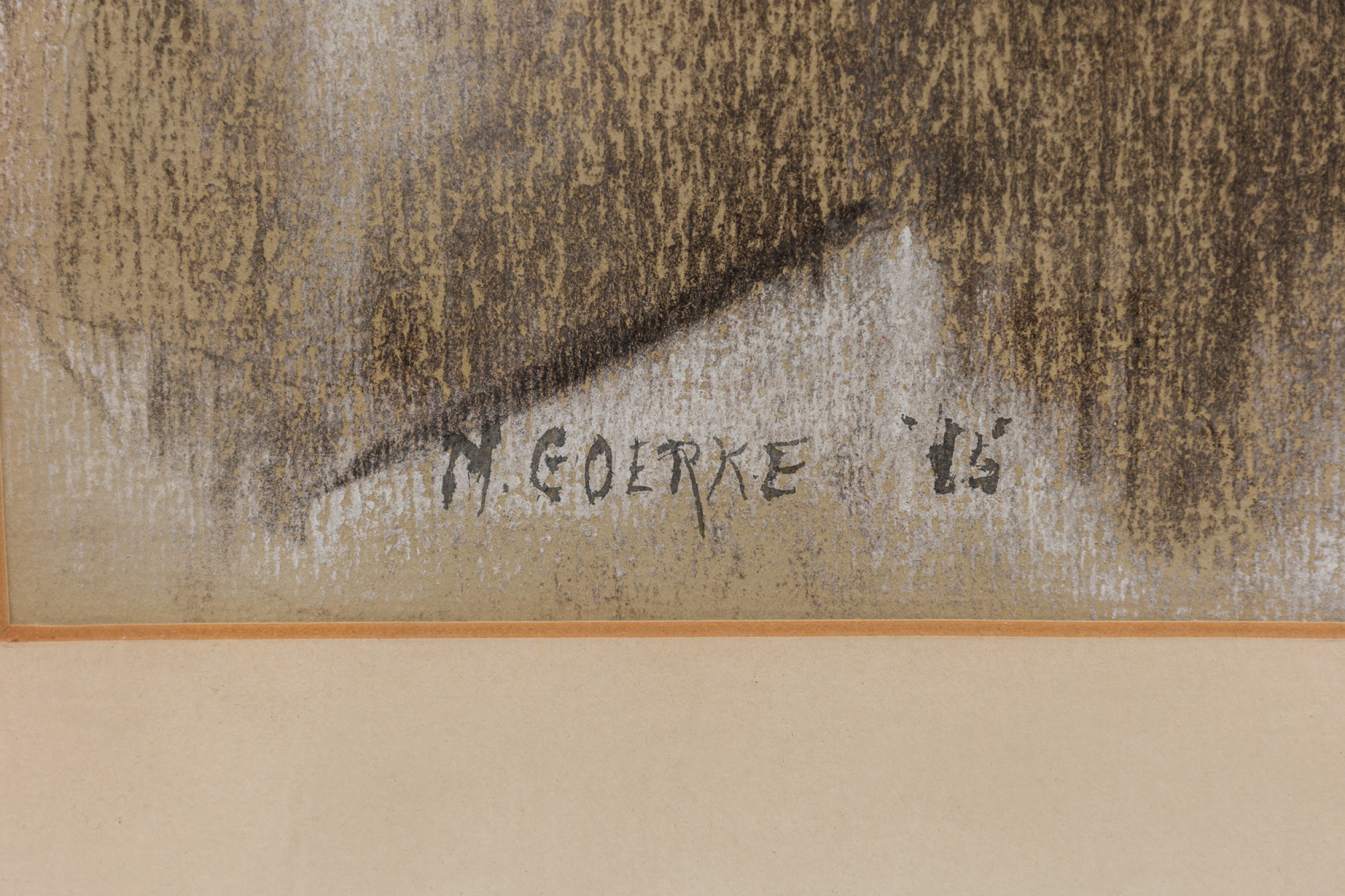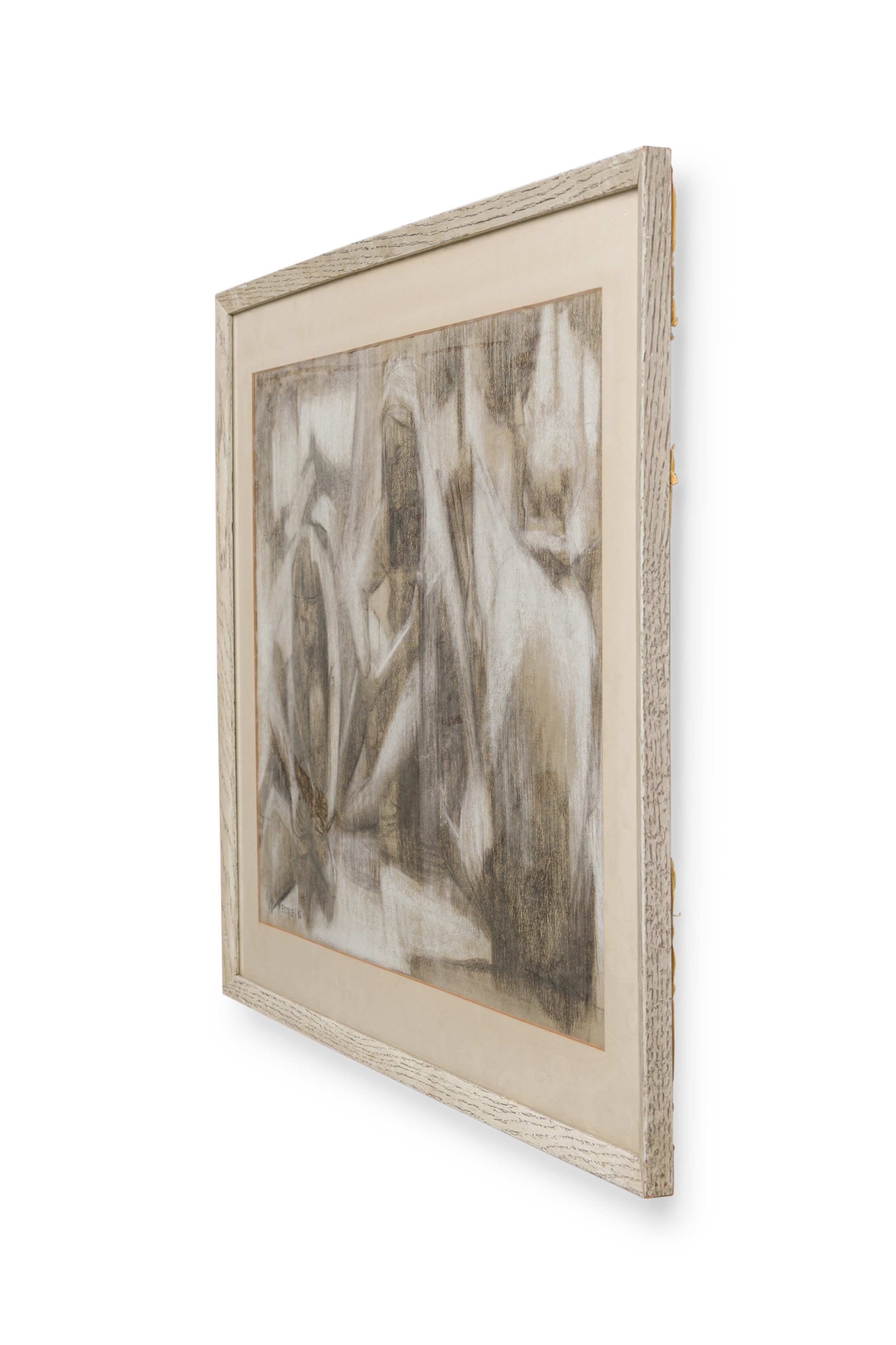 Contemporary American Abstract charcoal and pastel depicts the mourning women as subjects, giving a lens into the process of mourning with accents of white over charcoal shades in a bleached oak frame (Signed Recto: (M.J.) GOERKE).