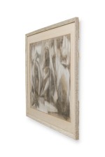 Contemporary American Abstract charcoal and pastel depicts the mourning women as subjects, giving a lens into the process of mourning with accents of white over charcoal shades in a bleached oak frame (Signed Recto: (M.J.) GOERKE)