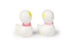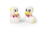 =American Contemporary bow tied duck figurine salt & pepper shakers on a circular base (ENESCO)