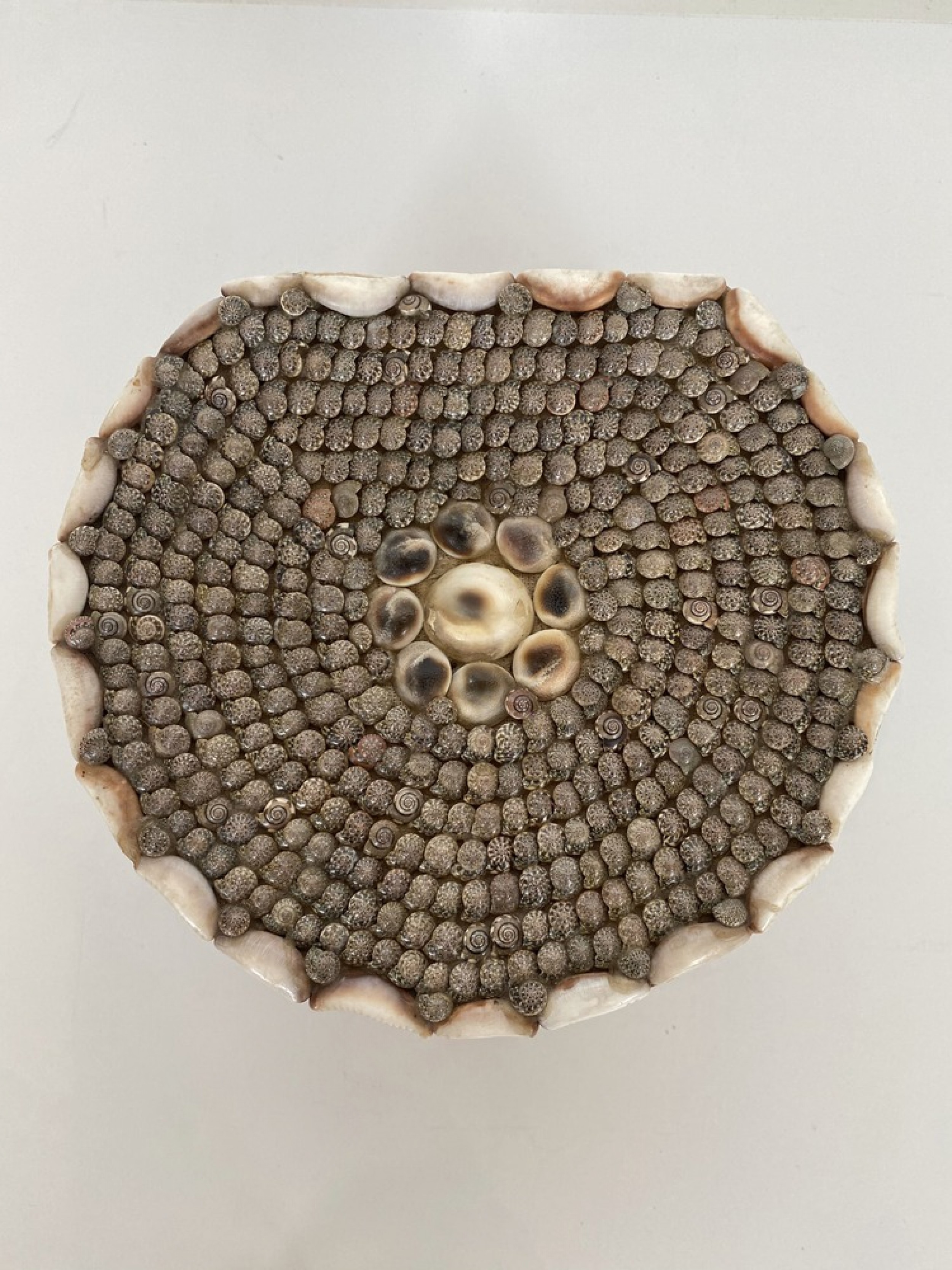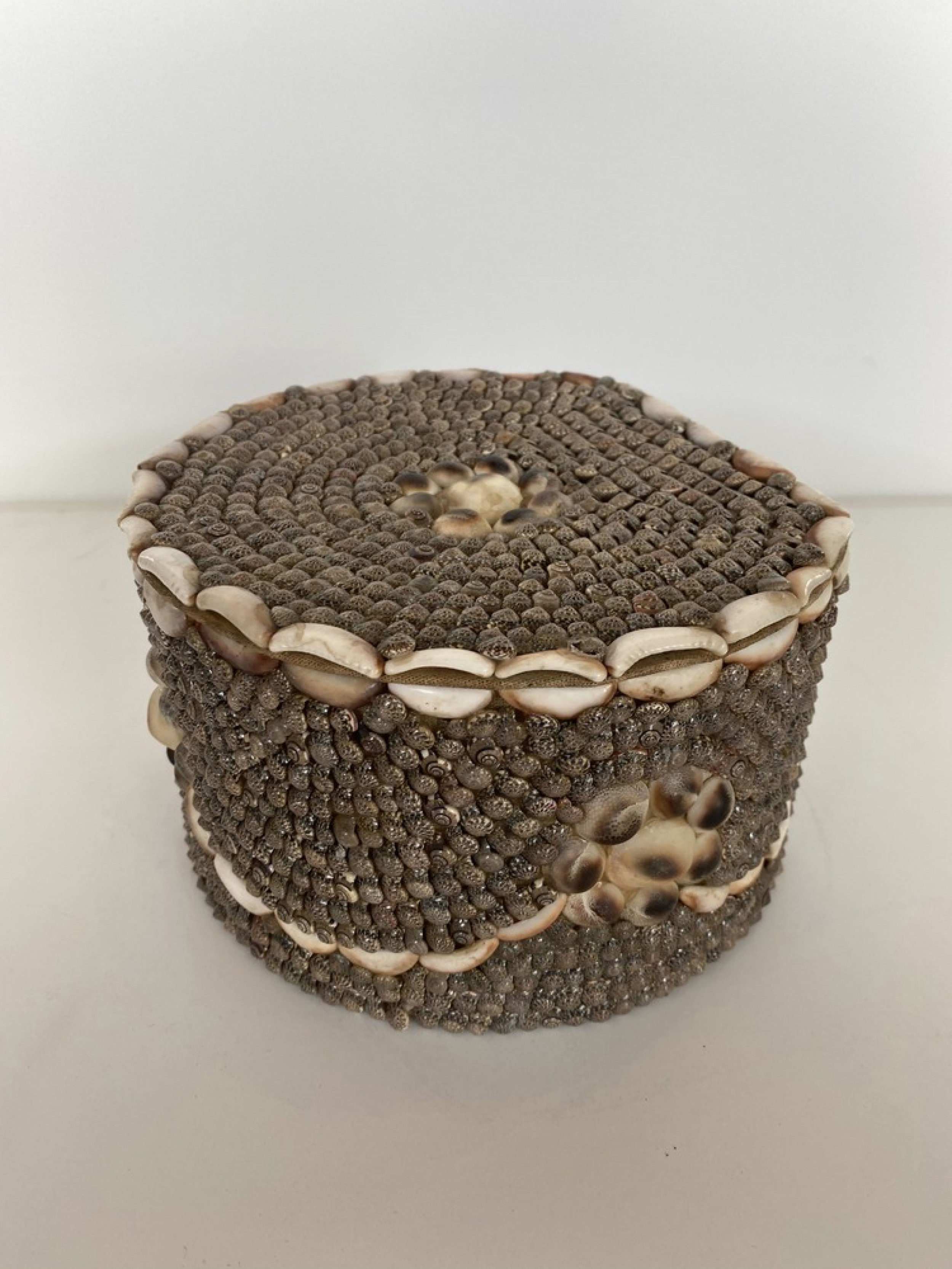 Style: Contemporary/Post-War Design Materials & Techniques: Coral / shell, velvet, wood Category: Accessories/Décor/Bric-a-Brac Good; Wear consistent with age and use