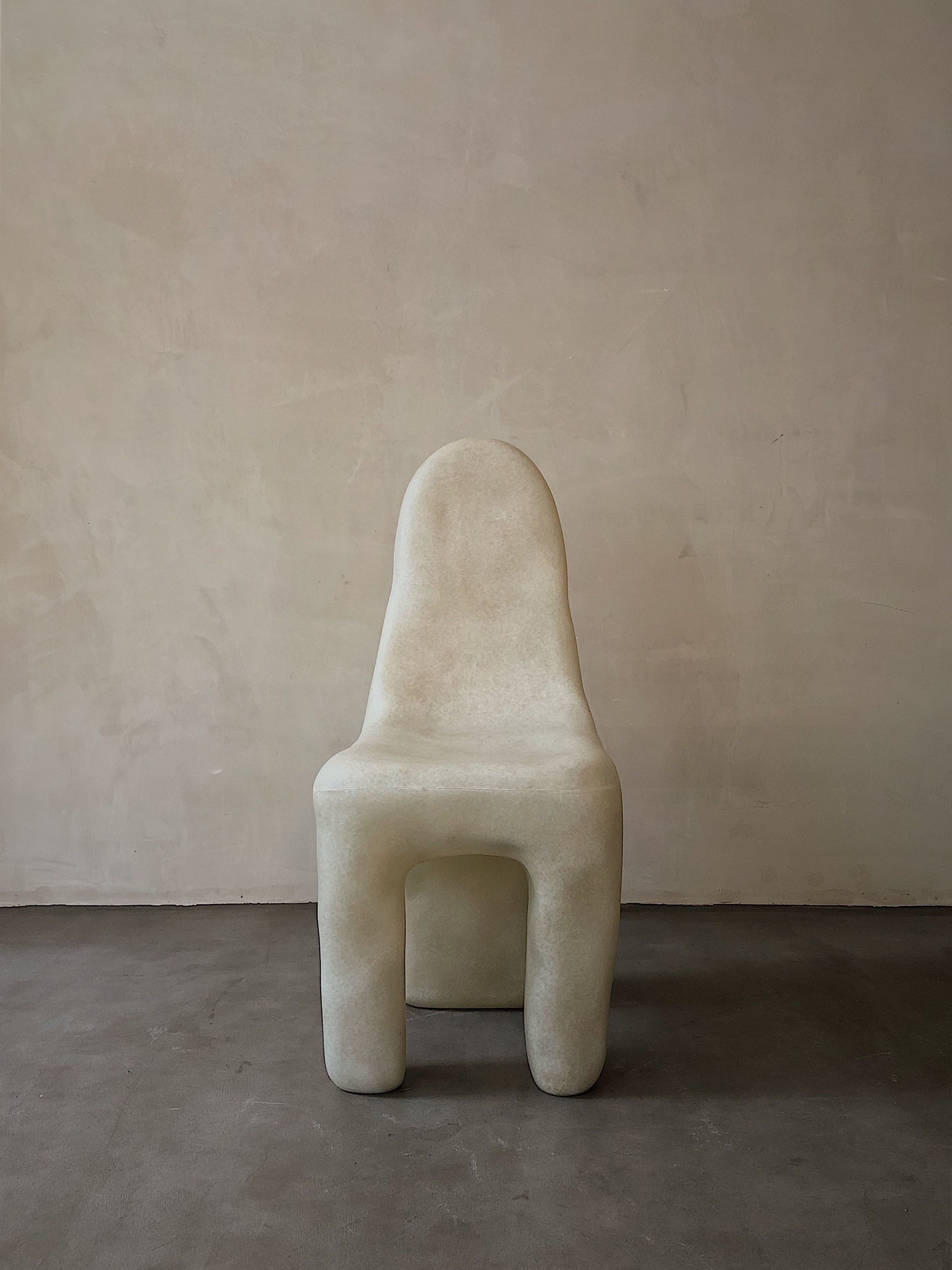 2 Contemporary beige amorphous fiberglass "Playdough" side chairs (KAR STUDIO) (PRICED EACH)