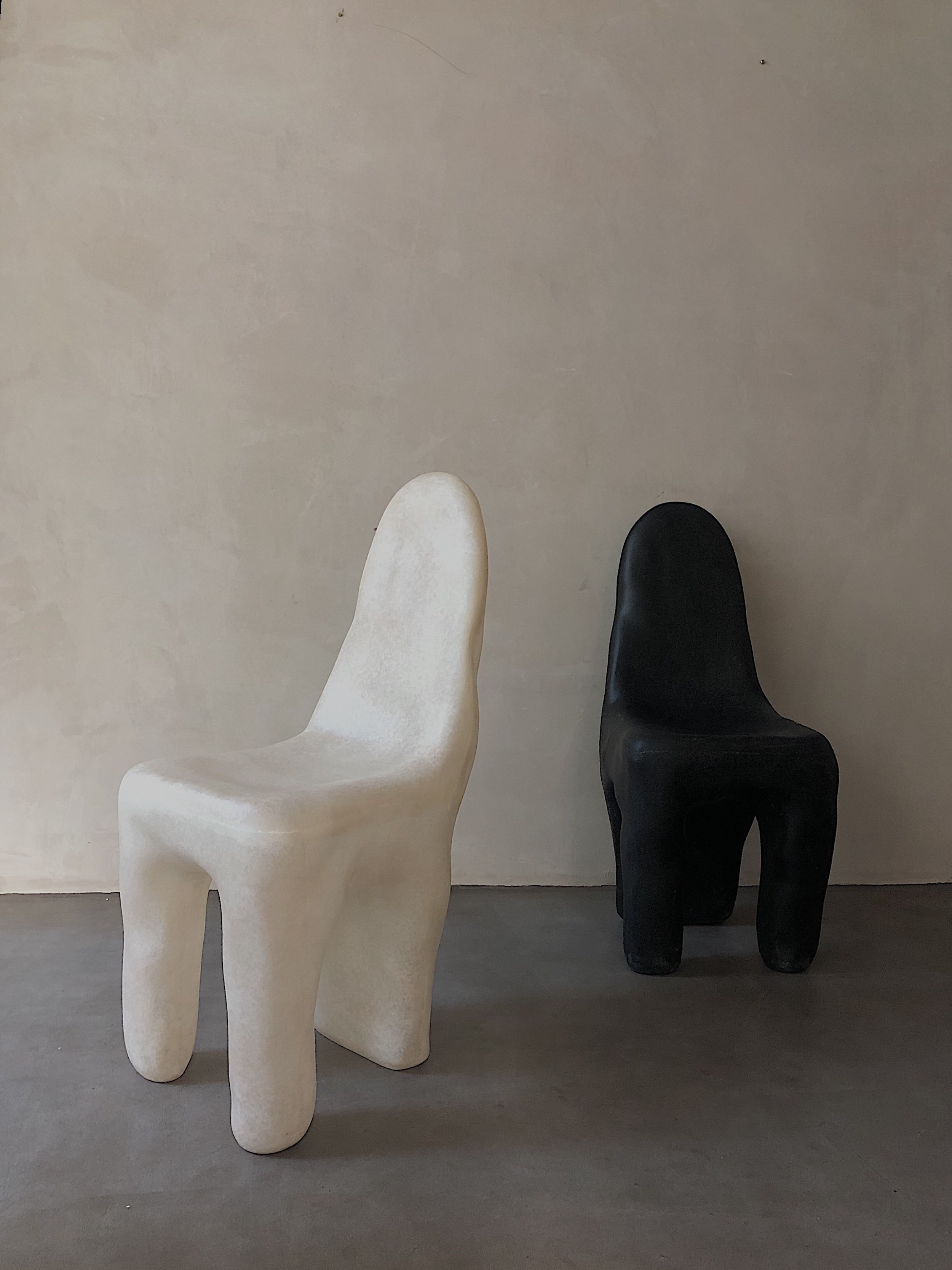 2 Contemporary beige amorphous fiberglass "Playdough" side chairs (KAR STUDIO) (PRICED EACH).