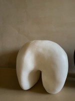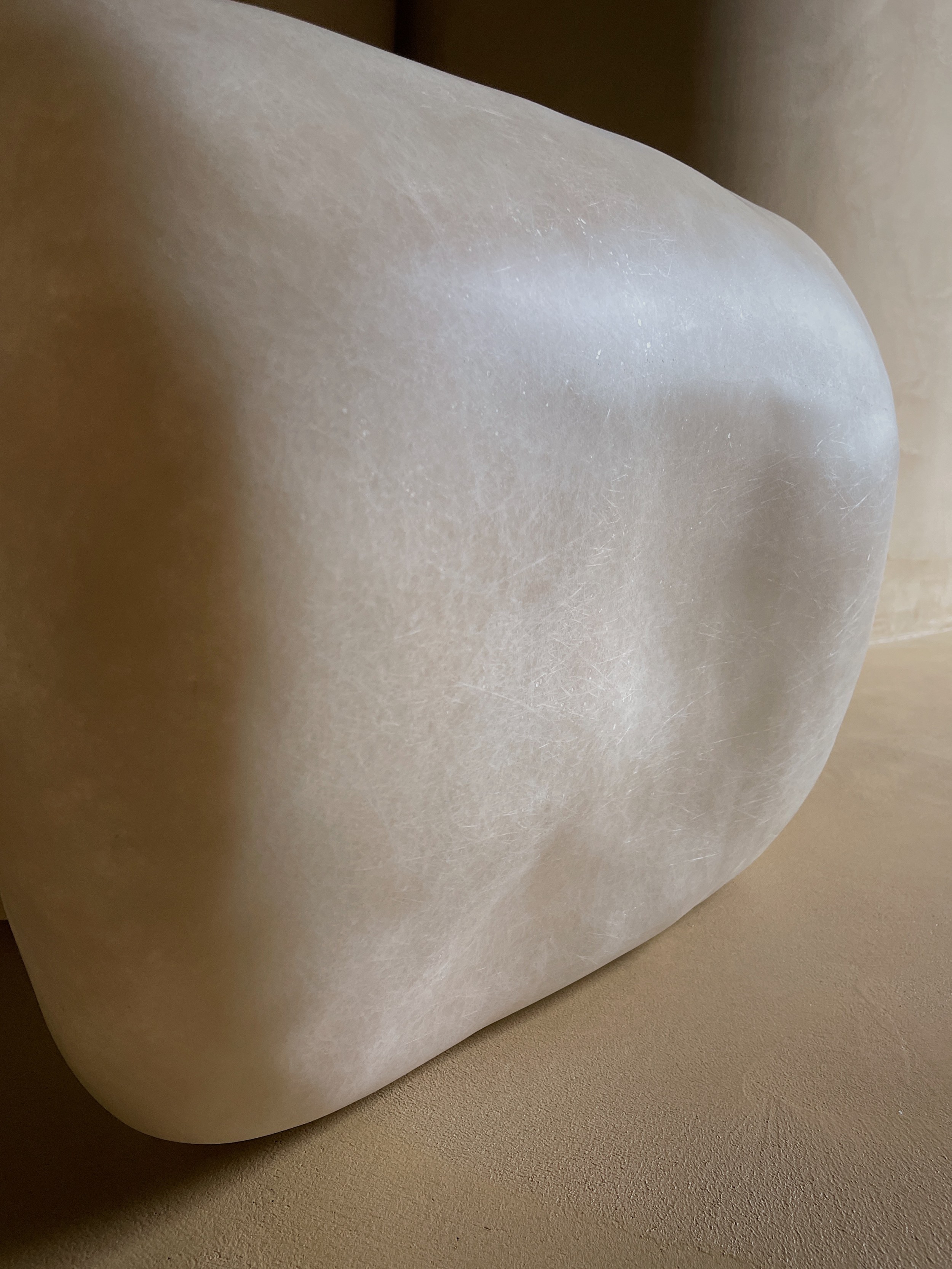 Contemporary "Tooth" stool in a beige fiberglass molded form that resembles a leveled molar tooth (KAR STUDIO)