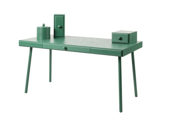 Contemporary desk with one drawer complemented with three tabletop storing compartments, a contemporary interpretation of a secretaire (THOMAS DARIEL)