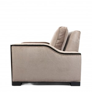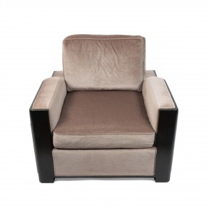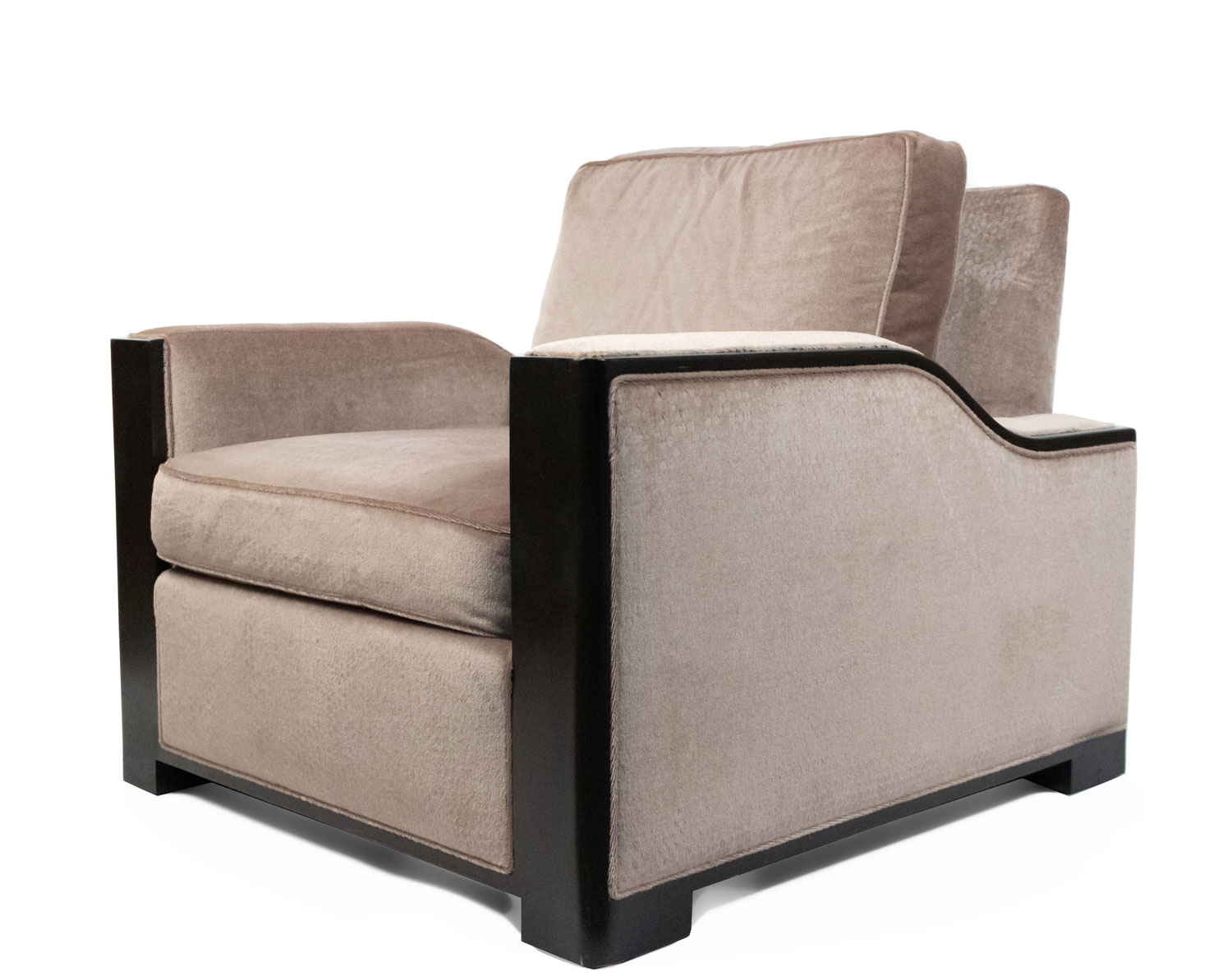 Contemporary Cream Velvet Armchair with Dark Maple Trim
