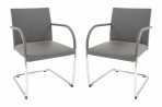 PAIR of Contemporary gray leather seat and square back arm chairs with chrome cantilevered bases and gray wrapped arms.