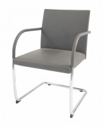 PAIR of Contemporary gray leather seat and square back arm chairs with chrome cantilevered bases and gray wrapped arms..