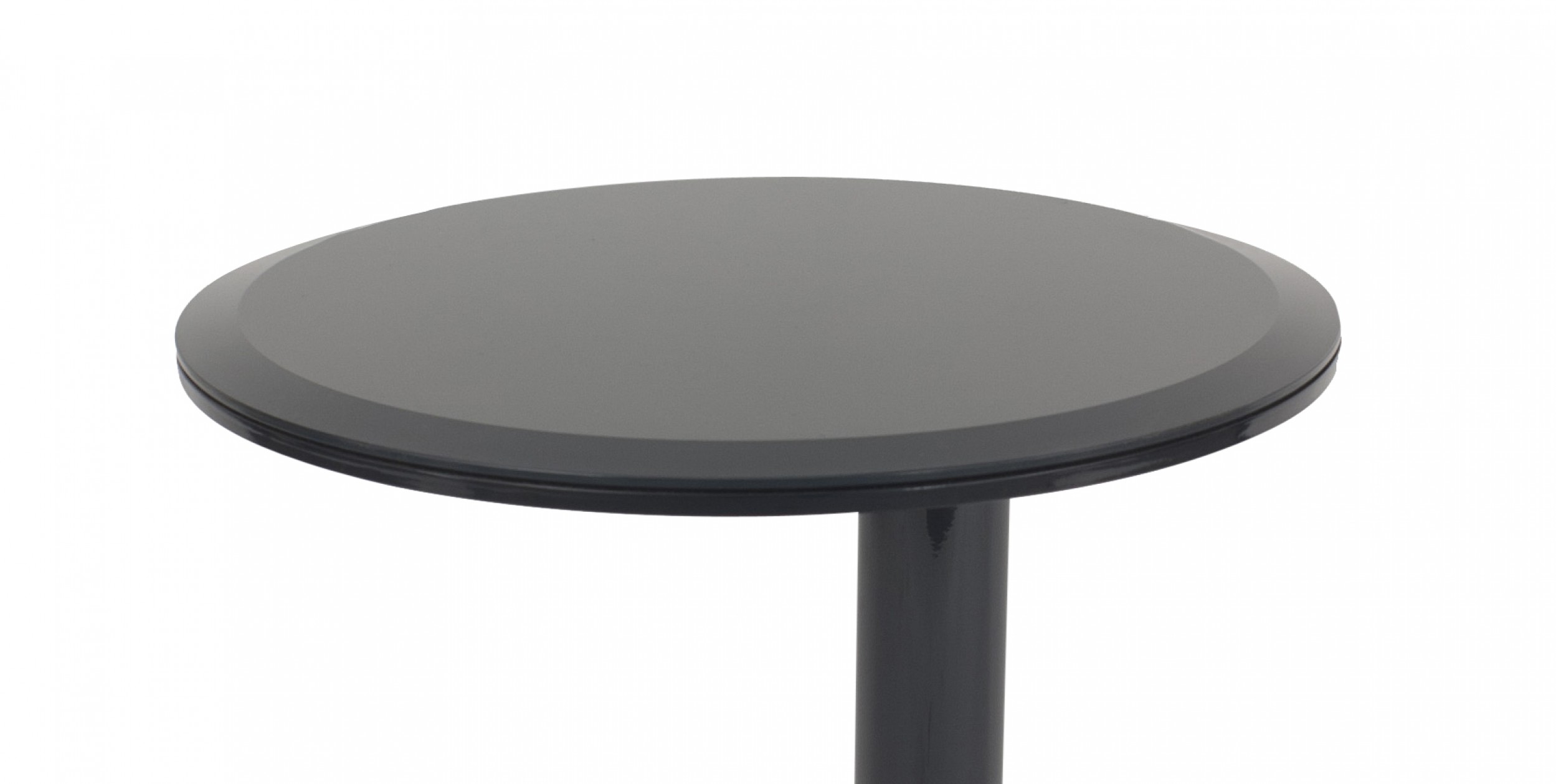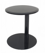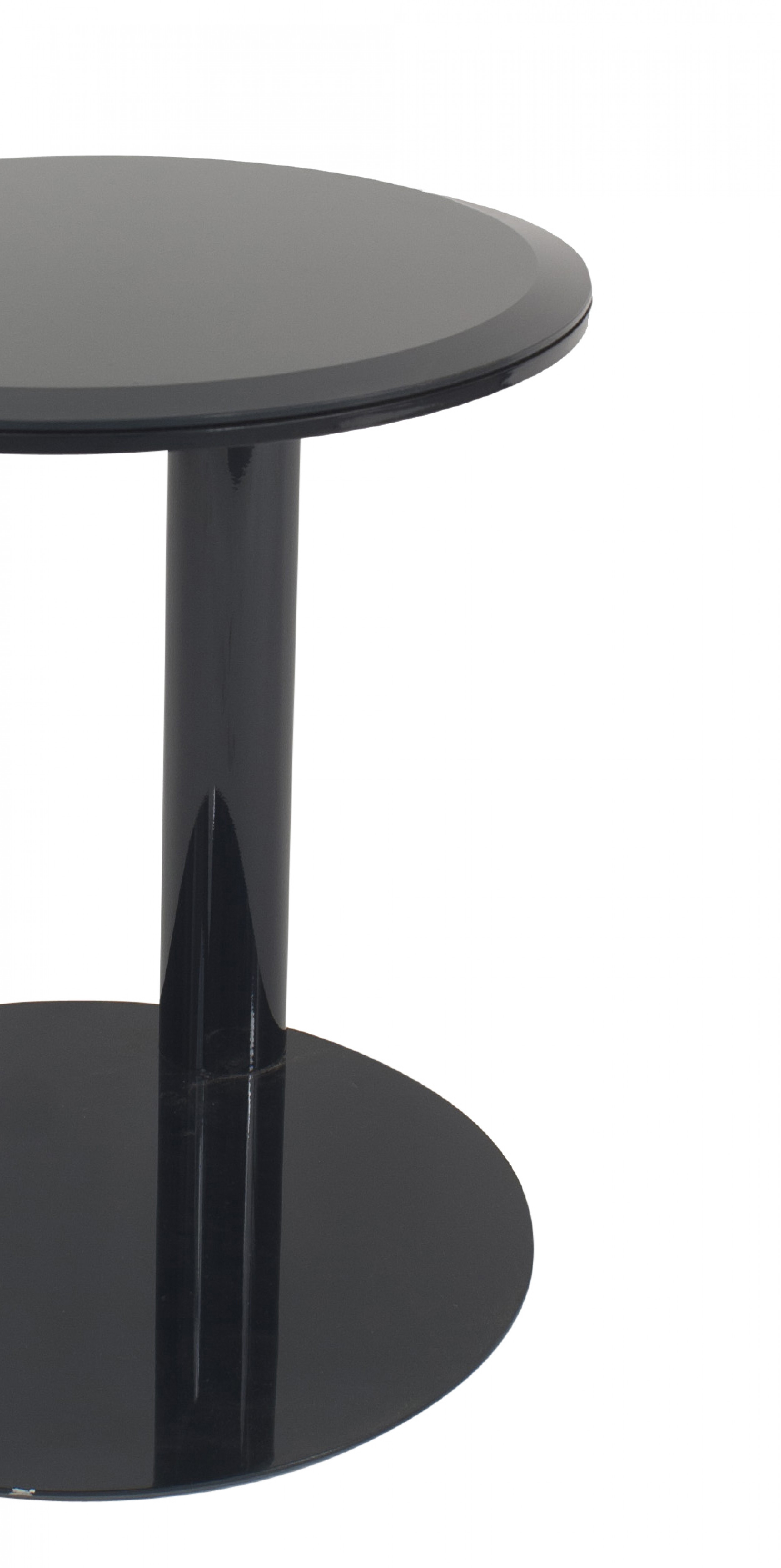 Contemporary "OTO" circular end table with a satin blue-gray beveled glass top and lacquered metal base with off-set post (Related item: MTL002)