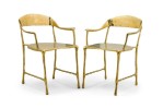 5 Contemporary "ALMEIDA" polished bronze dining armchairs with curved backs and gently tapered armrests. (PRICED EACH).