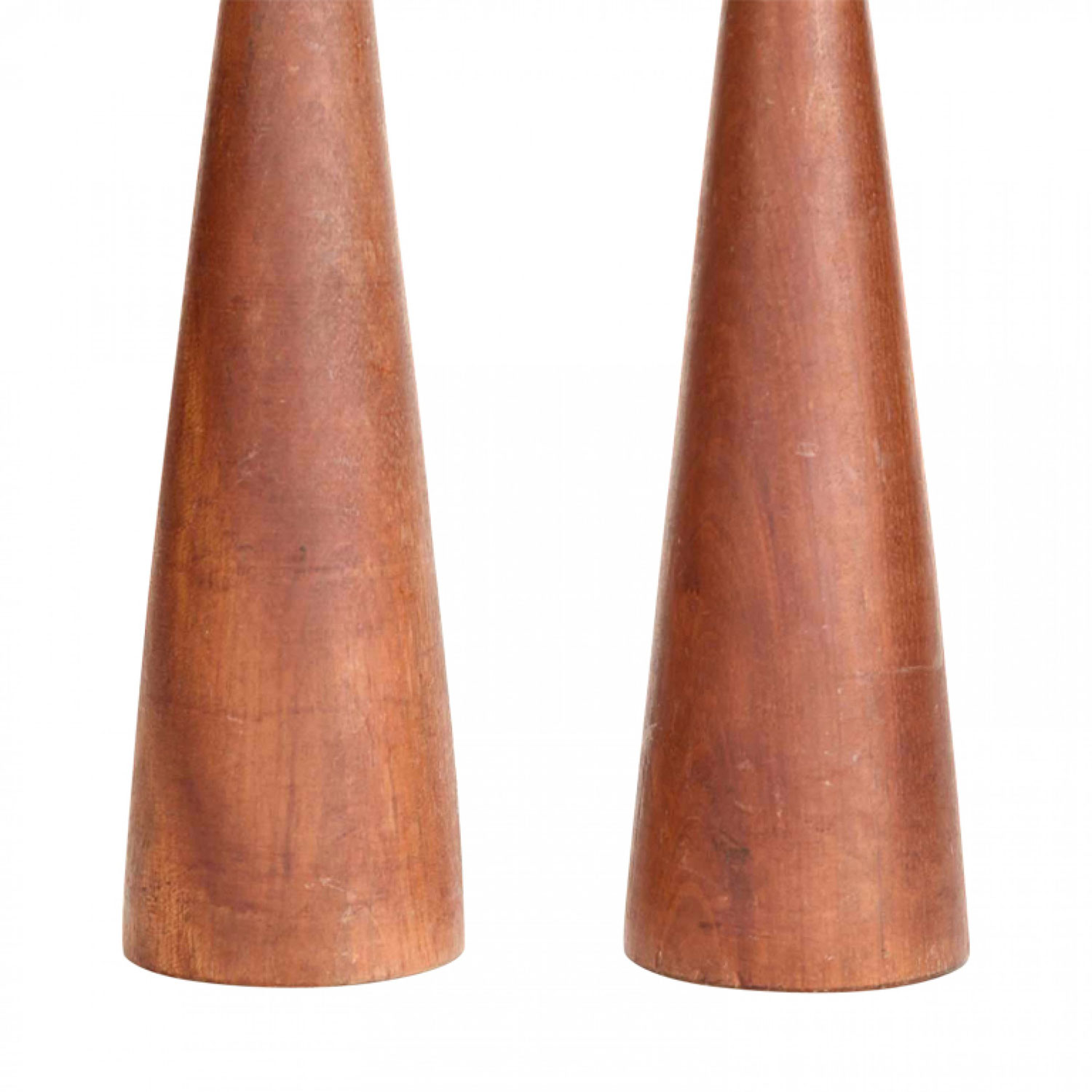 PAIR of Scandinavian Contemporary teak candlesticks with a tapered center (PRICED AS PAIR).