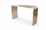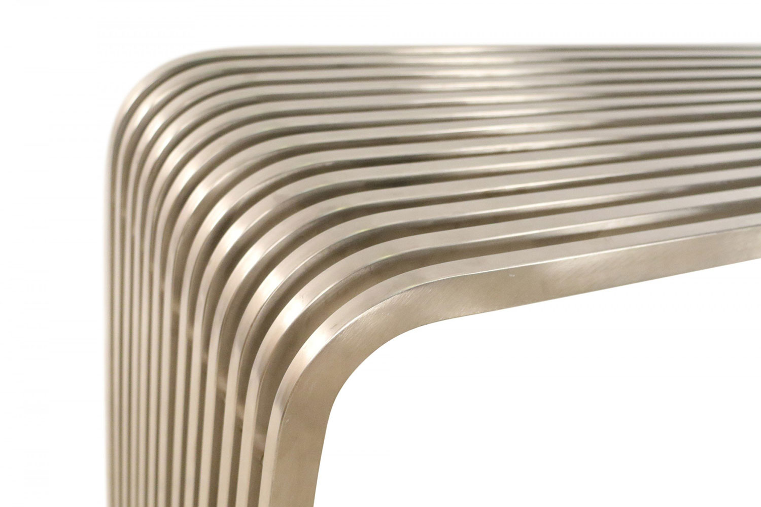 PAIR of Contemporary silver metal console tables comprised of bent metal slats (PRICED AS PAIR).