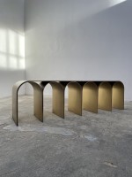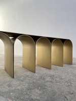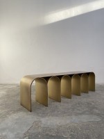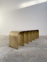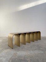 Contemporary steel gold arch 7-leg bench with a repetition of arch motifs in a hand-applied brass finish (PIETRO FRANCESHINI).