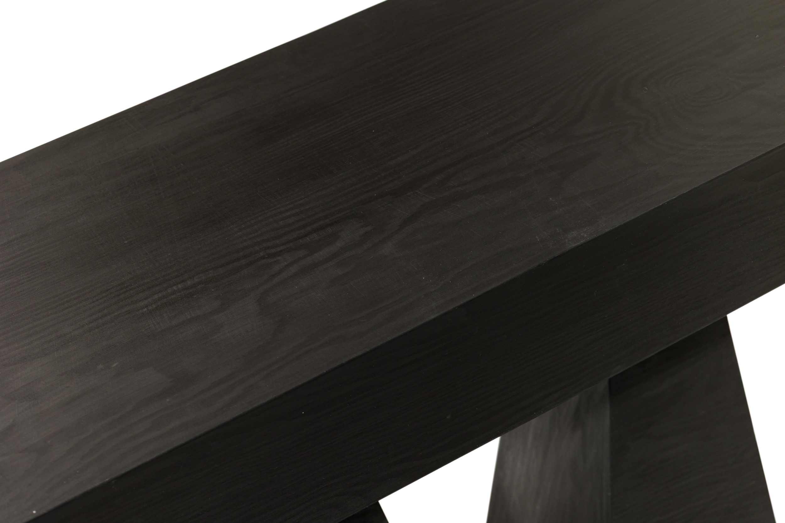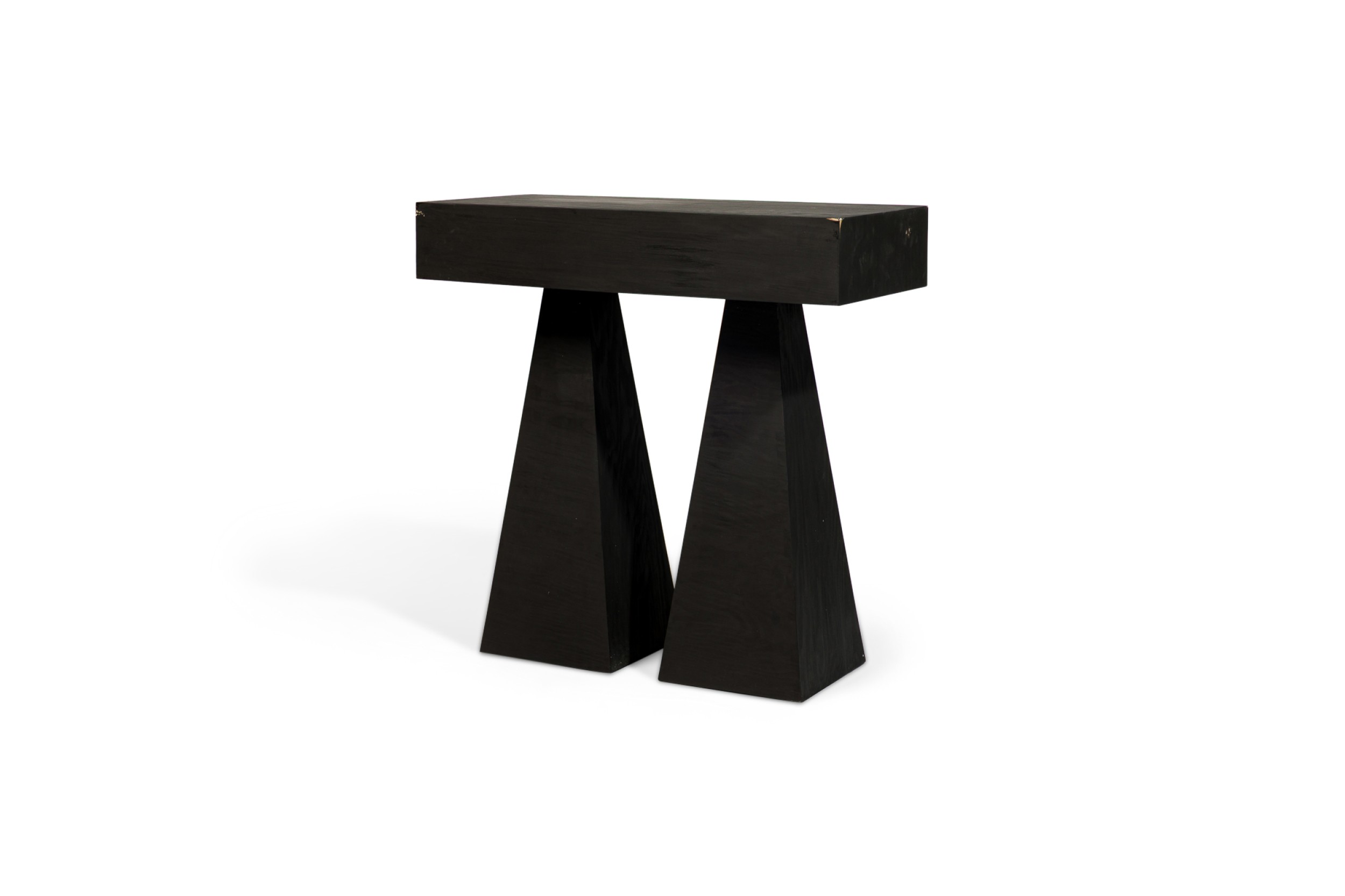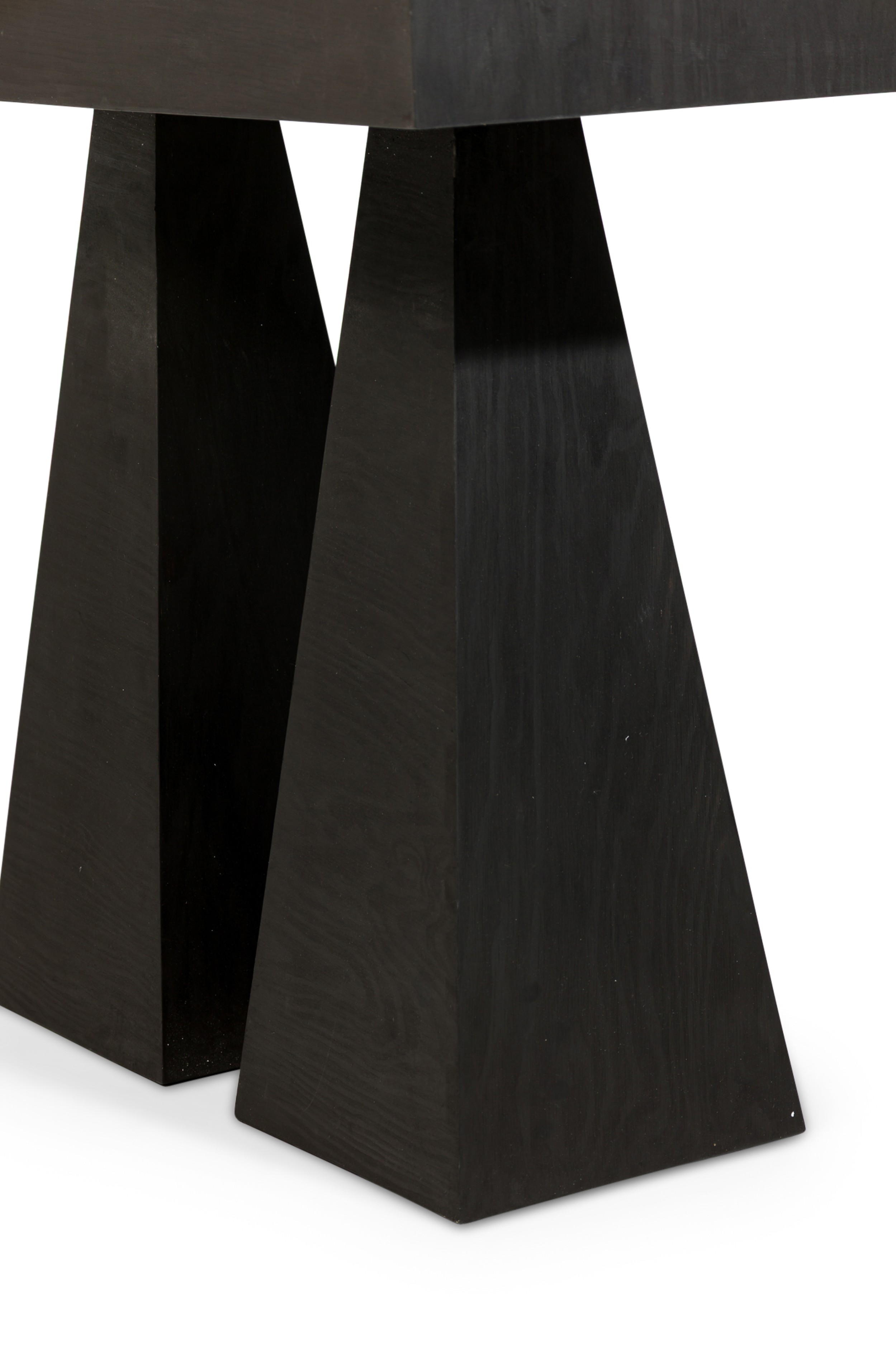 Contemporary handwaxed plywood console with a rectangular top resting on two pyramid bases (LUCAS MORTEN, EDITION OF 29 1 AP )