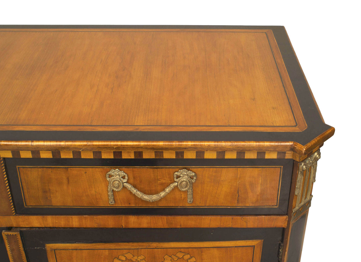 Continental Dutch (18th/19th Century) satinwood commode cabinet with 2 drawers above to doors with floral marquetry panels.