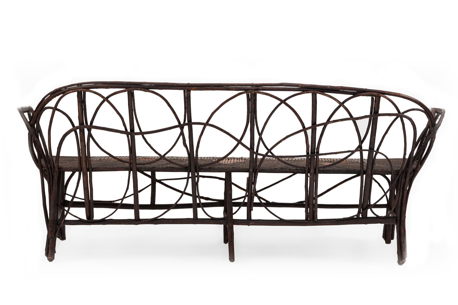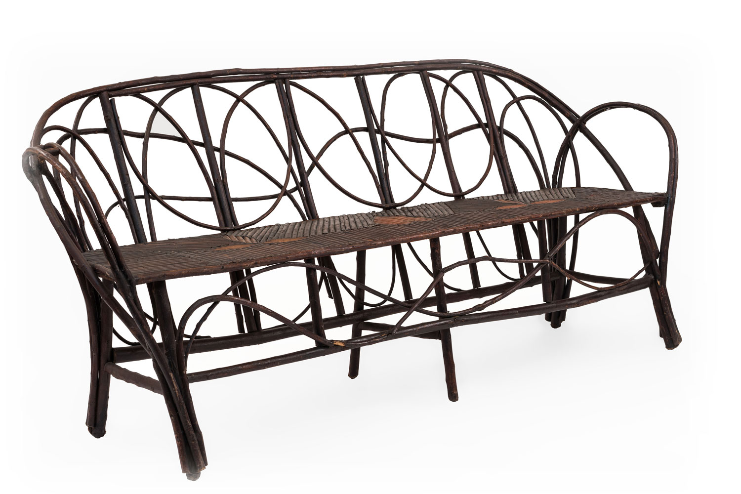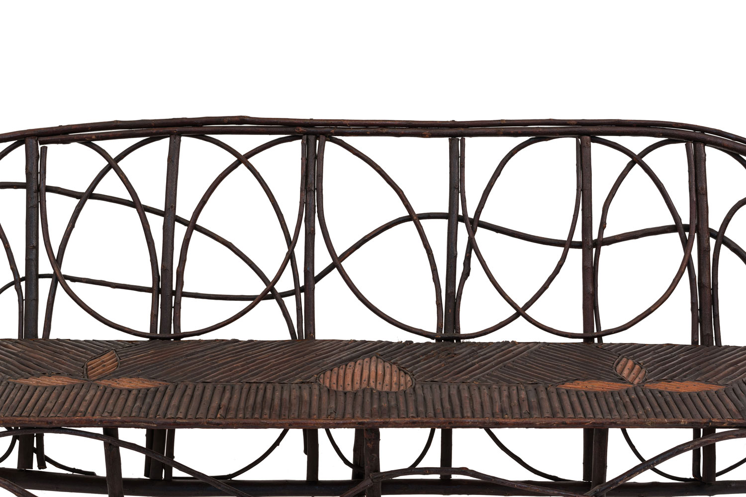 Continental (Possibly French) Rustic bent willow settee with hoop back & arms above a split twig inlaid seat (French, 19/20th Cent)