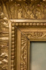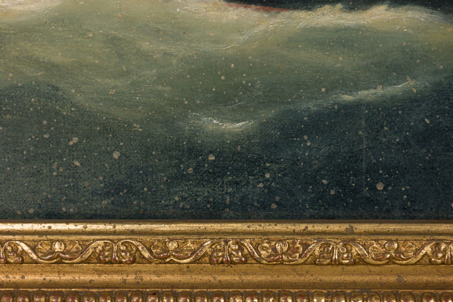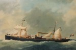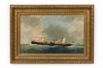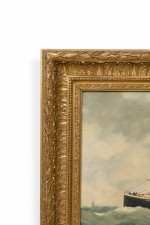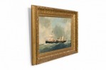 Copy of a seascape painting titled "Steamer One" depicting a ship under full sail in a rough sea.