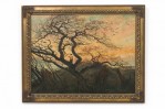 Copy of a German Romantic style landscape painting titled "Tree With Crows" showing a bare tree with crows against a sunrise