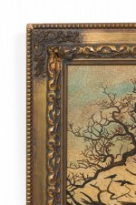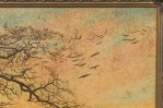Copy of a German Romantic style landscape painting titled "Tree With Crows" showing a bare tree with crows against a sunrise.