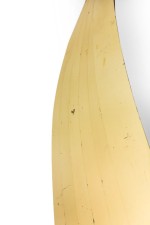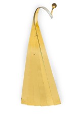 American mid-century wall plaque depiction of a brass fan with 6 fold sections that joins together at the end creating a swirl tail CURTIS JERE).