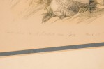 English Georgian (1st half 19th Century) gilt framed colored lithograph of a group of Moorish men on a hillside by ancient damaged stone pillars (titled: Ruins Called Om El Hamed Near Tyre April 25, 1839) (DAVID ROBERTS) (companion to REG9009).