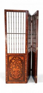 Continental Dutch Style 4-Fold Screen with Inlaid Floral Marquetry