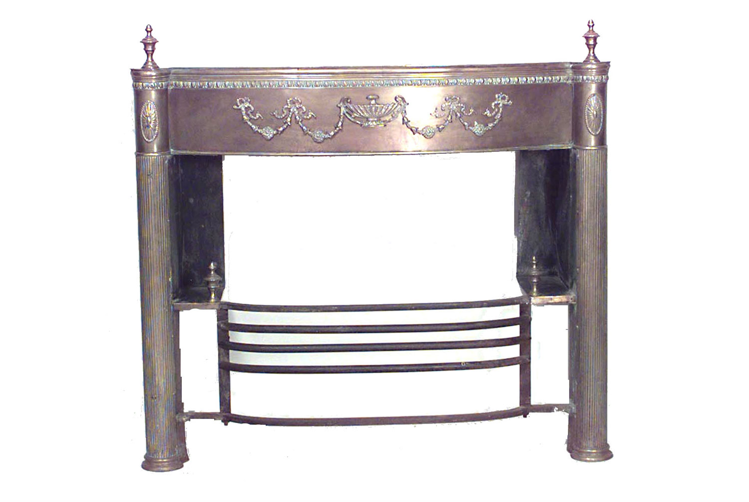 English Adam-style (19th Century) brass fireplace mantel with urns and applied brass festoon design with iron fender front..