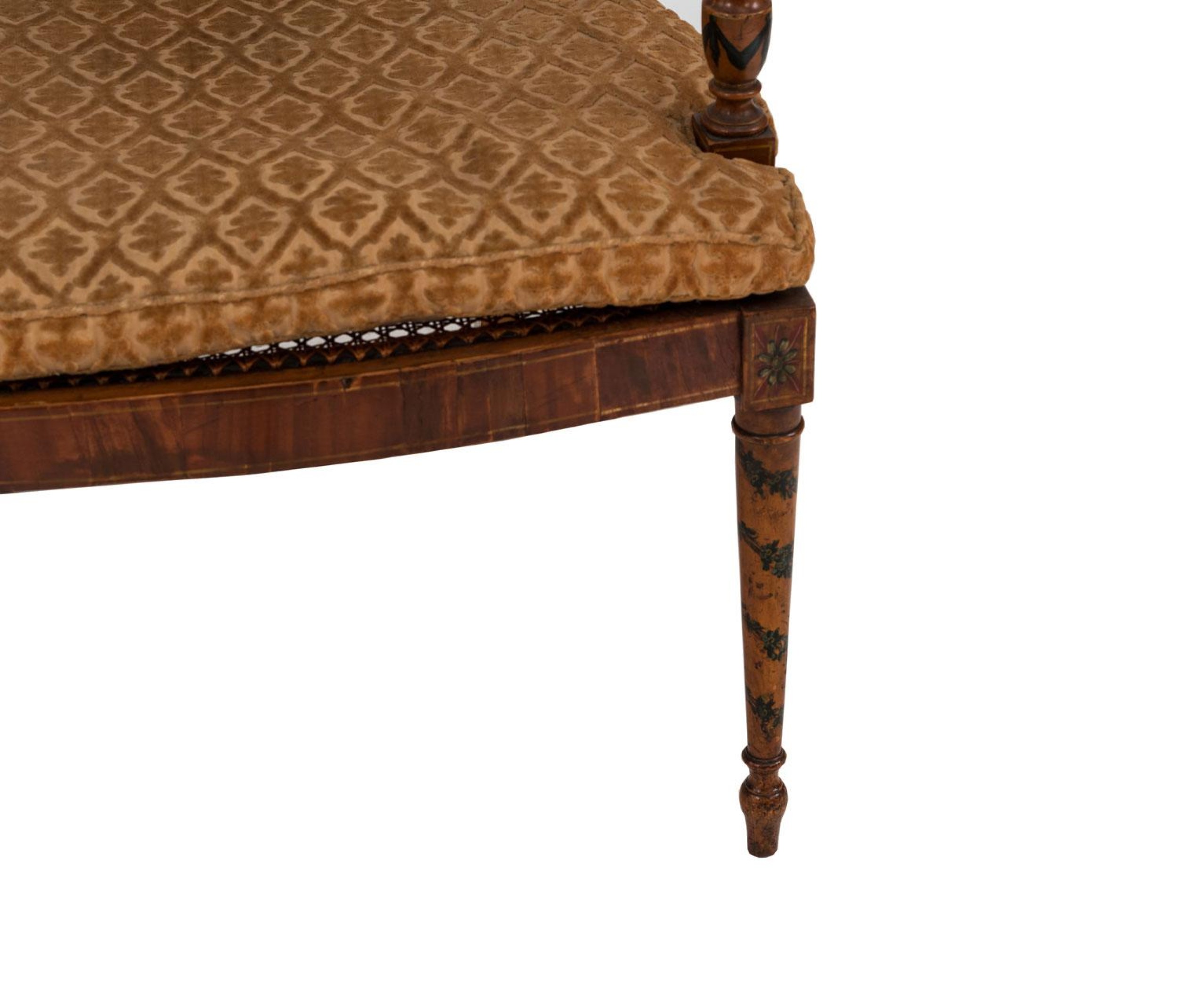 4 English Adam style (18/19th Cent) satinwood and cane back armchairs with painted panels (SEE ALSO: matching loveseat: 037850A, matching side chairs: 037850C)(PRICED ALL 4)