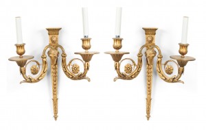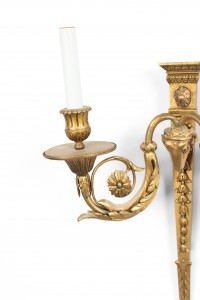 Pair of English Adam Style Bronze Dore Wall Sconces