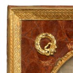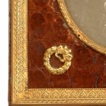 English (20th Century) brown crocodile square shaped easel picture frame with brass border and four wreaths in corners