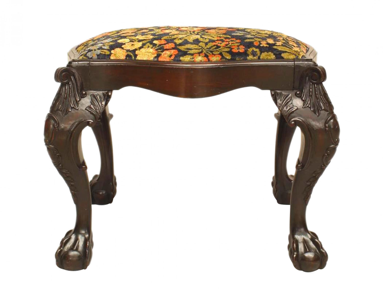 English Chippendale style (19/20th Century) mahogany rectangular bench with cut velvet slip seat.