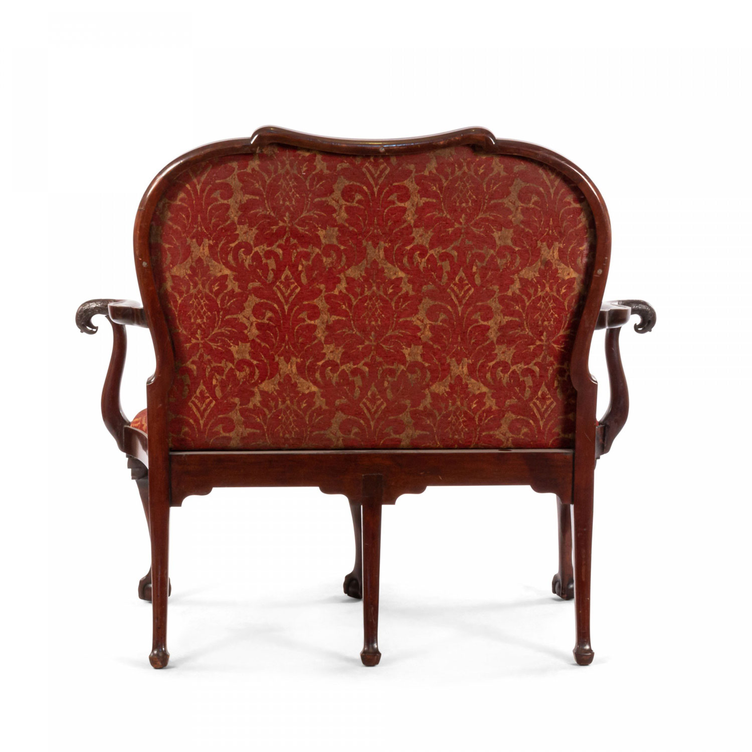 English Chippendale style (18/19th Cent) mahogany loveseat with eagle head arms and upholstered seat and back.