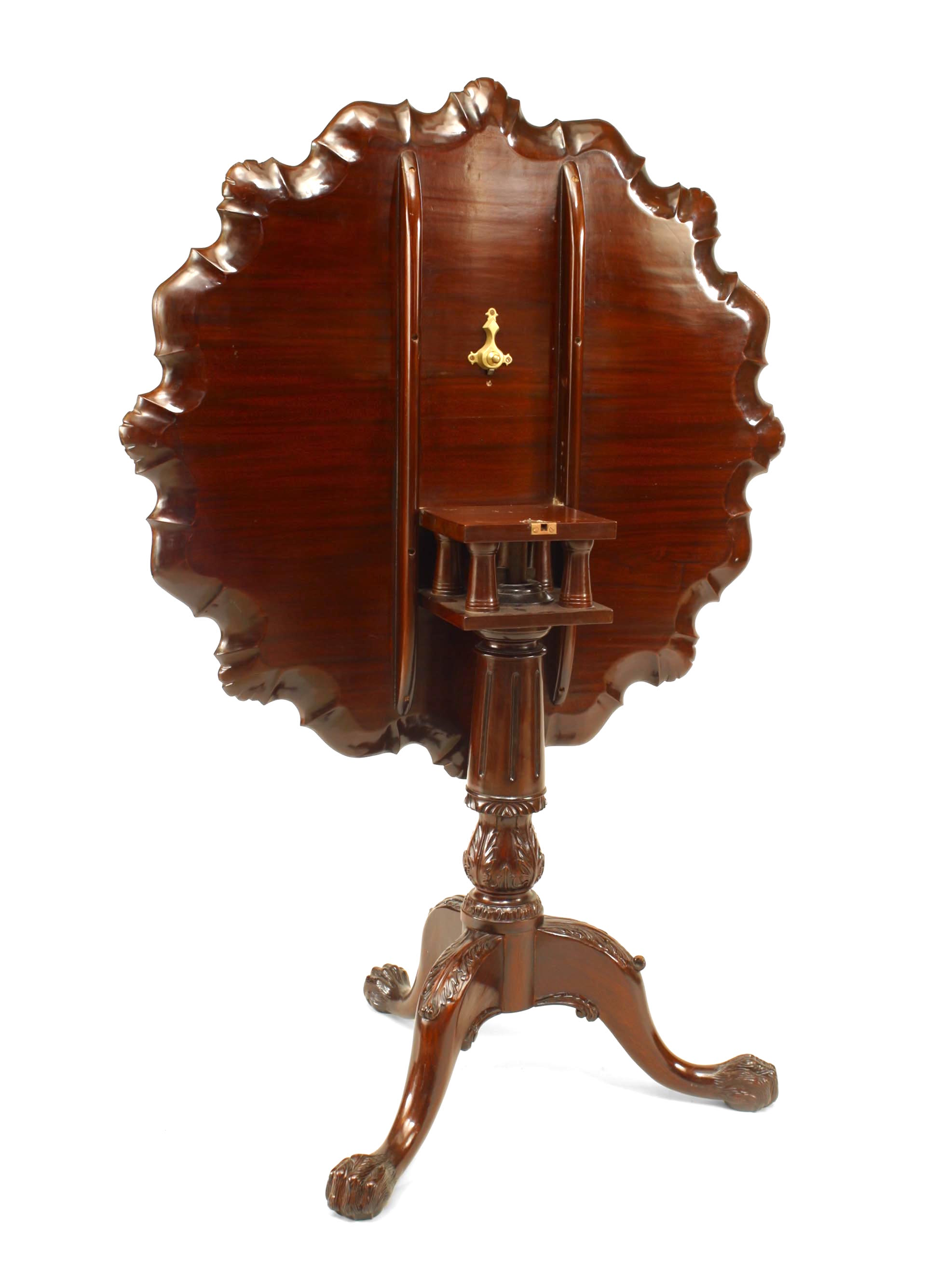 English Chippendale-style (20th Century) mahogany tilt top end table with shell design carving to top edge..