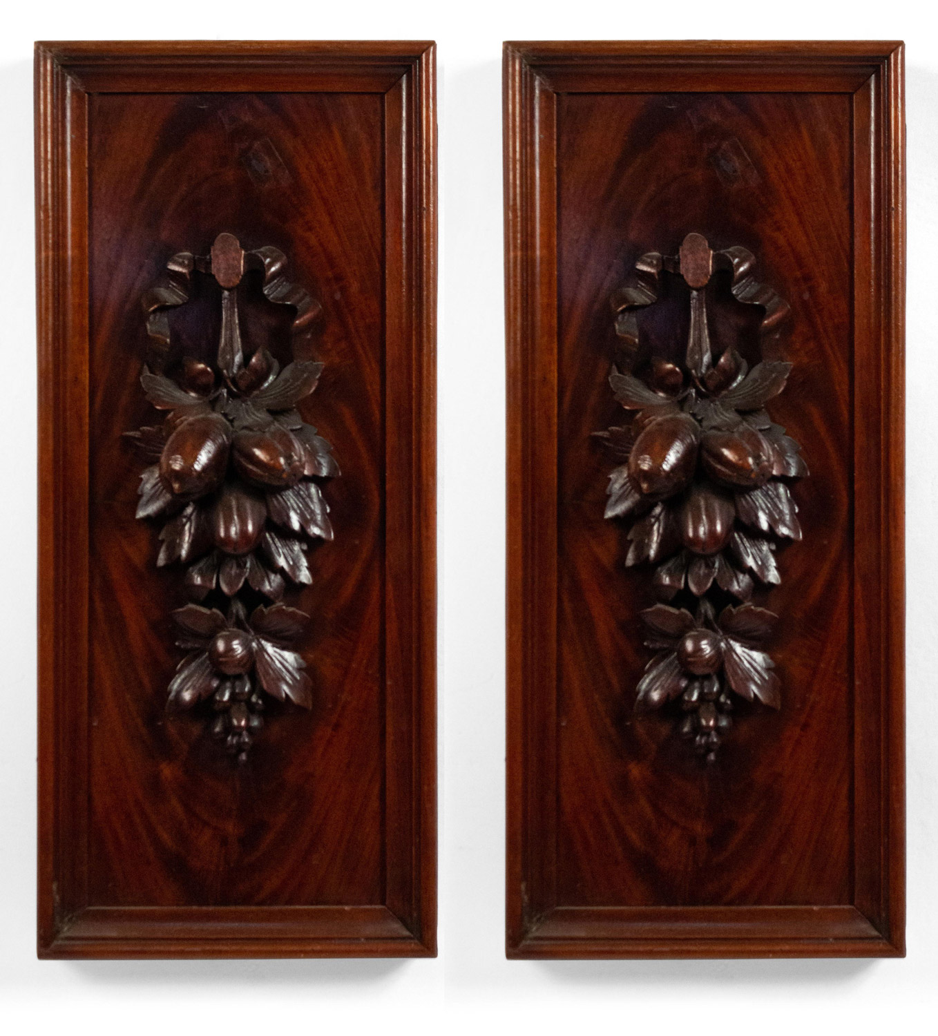 PAIR of English Victorian Country style mahogany rectangular carved floral wall plaques (PRICED AS PAIR)..