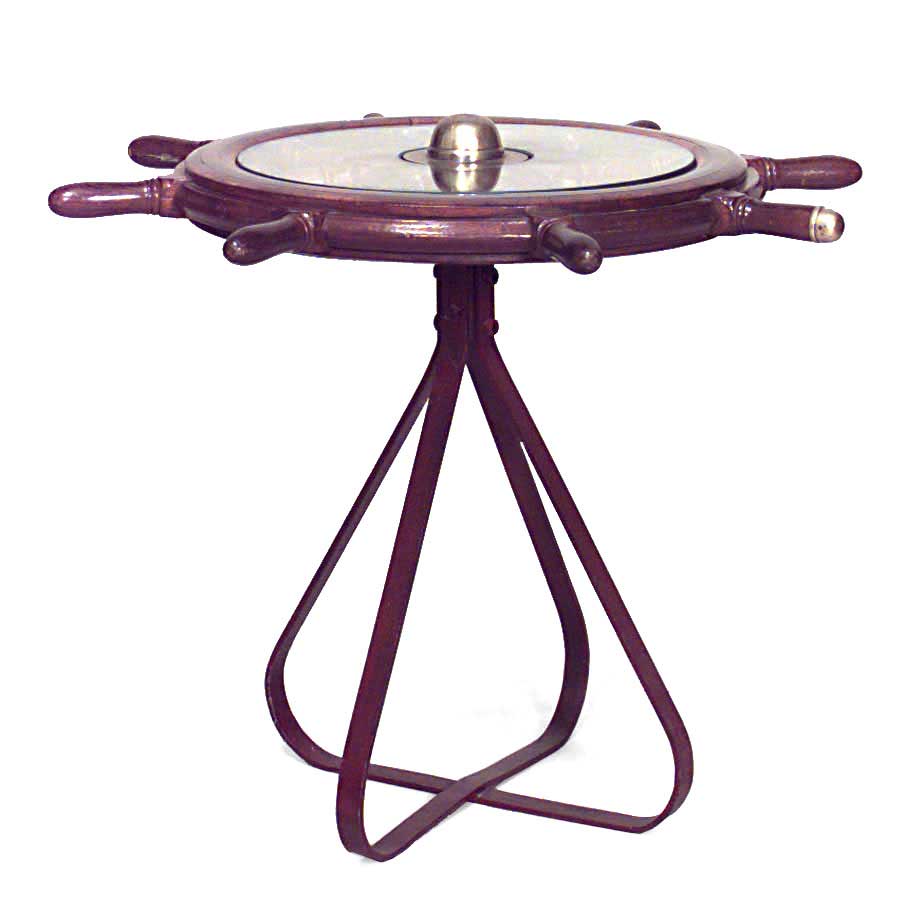 Style: English Materials & Techniques: Iron, oak Category: Tables